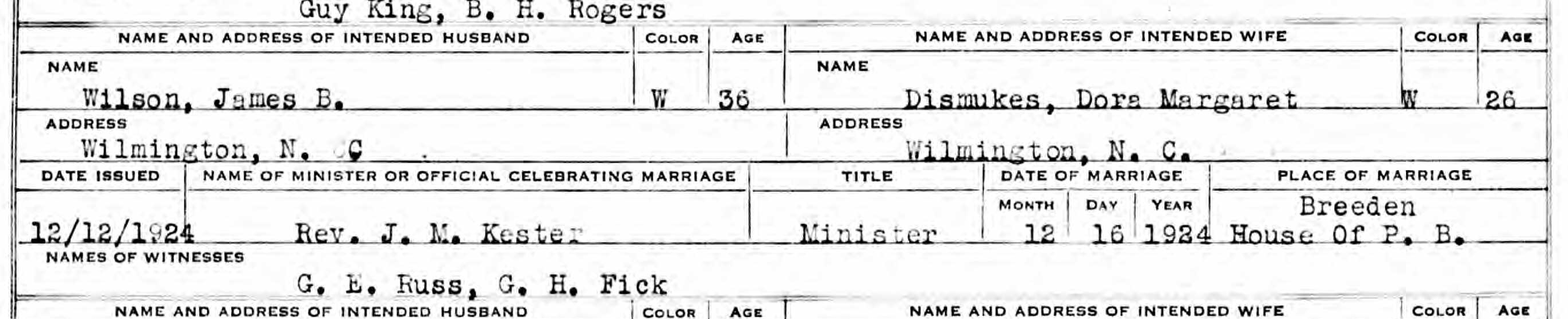 Marries Robert Augustus Wilson, Dec 3, 1910, Jefferson Co., AL (Alabama County Marriages