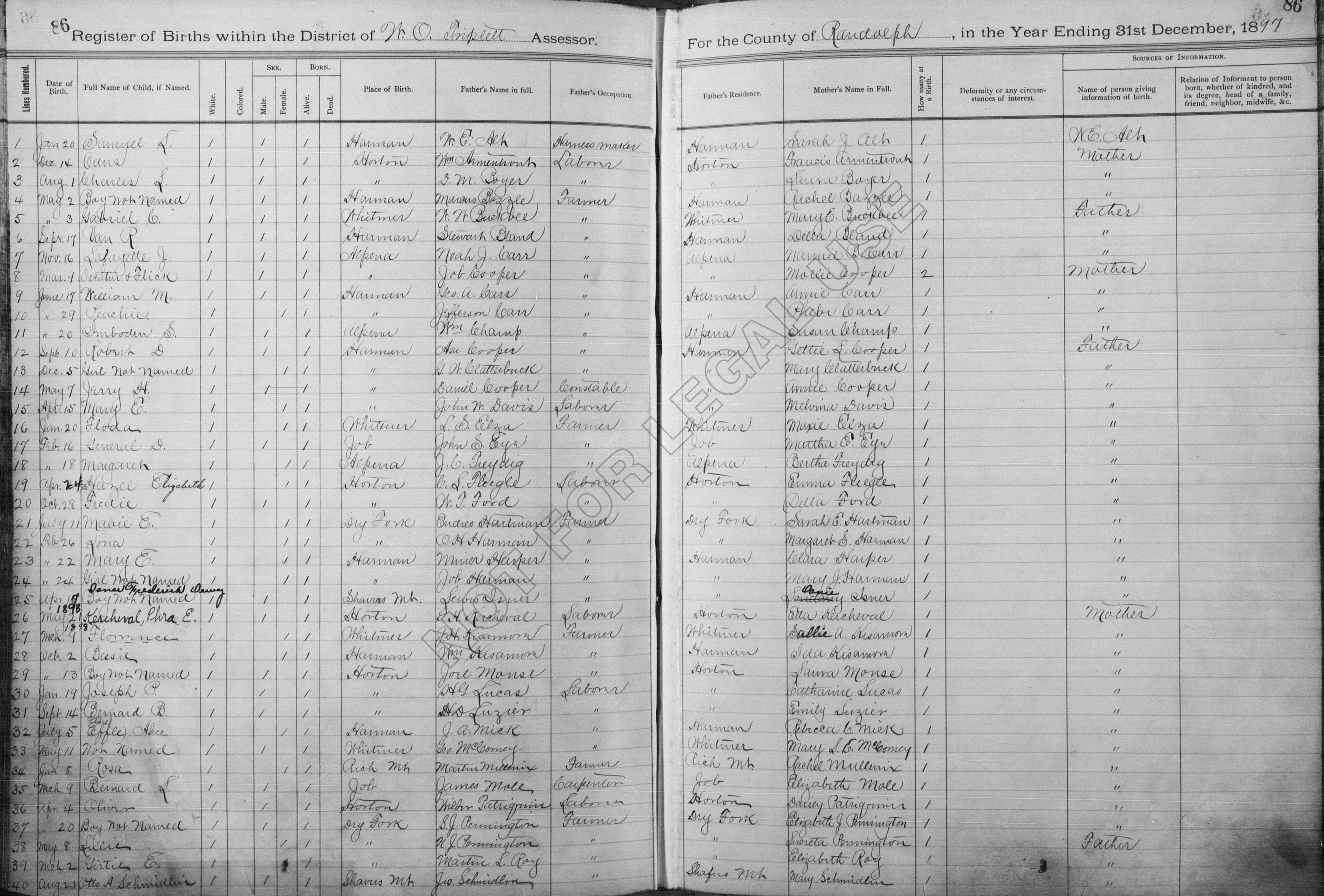Elizabeth in birth records for Randolph Co., WV. Based on