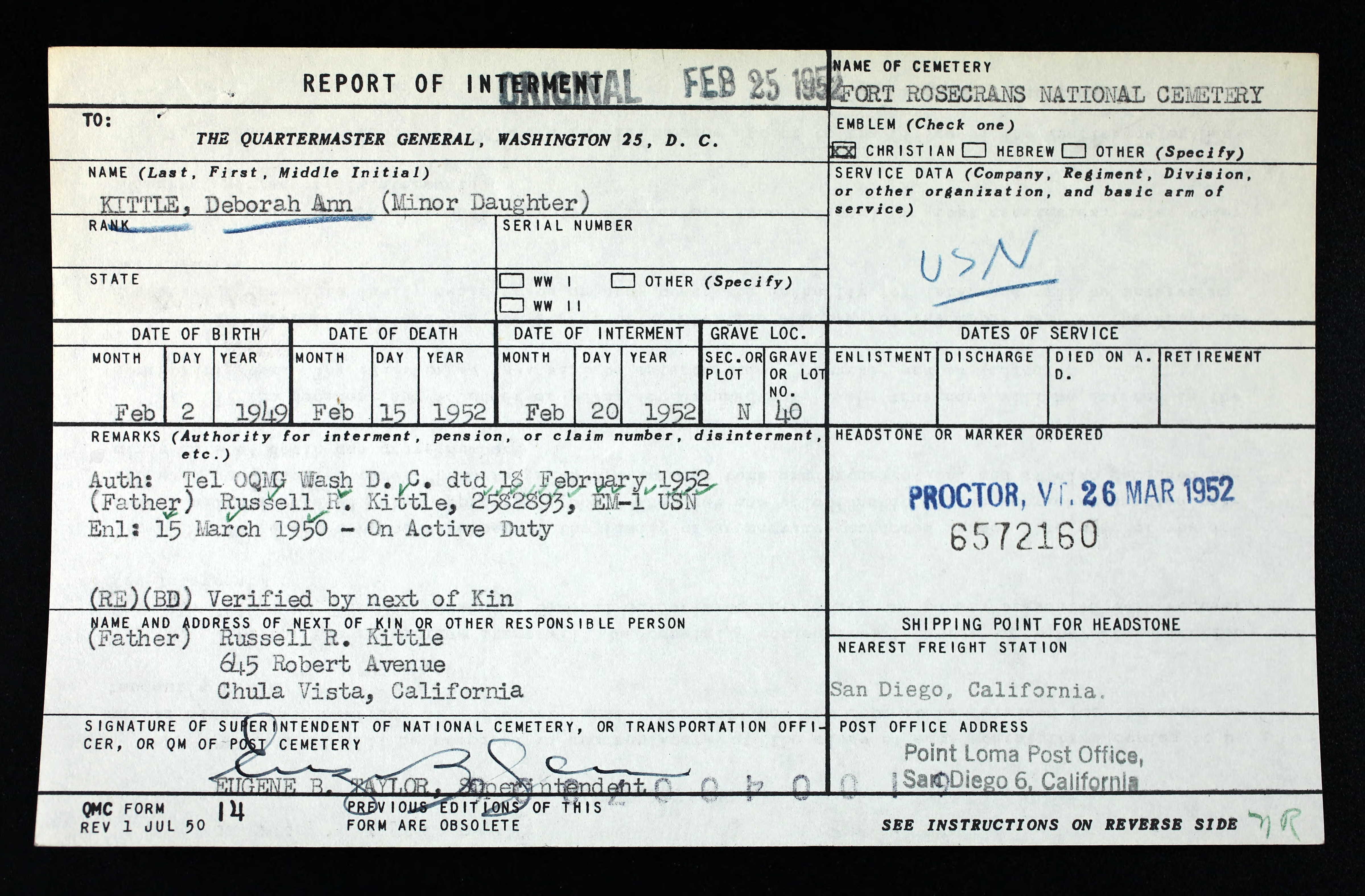 Buried with paternal grandfather. |