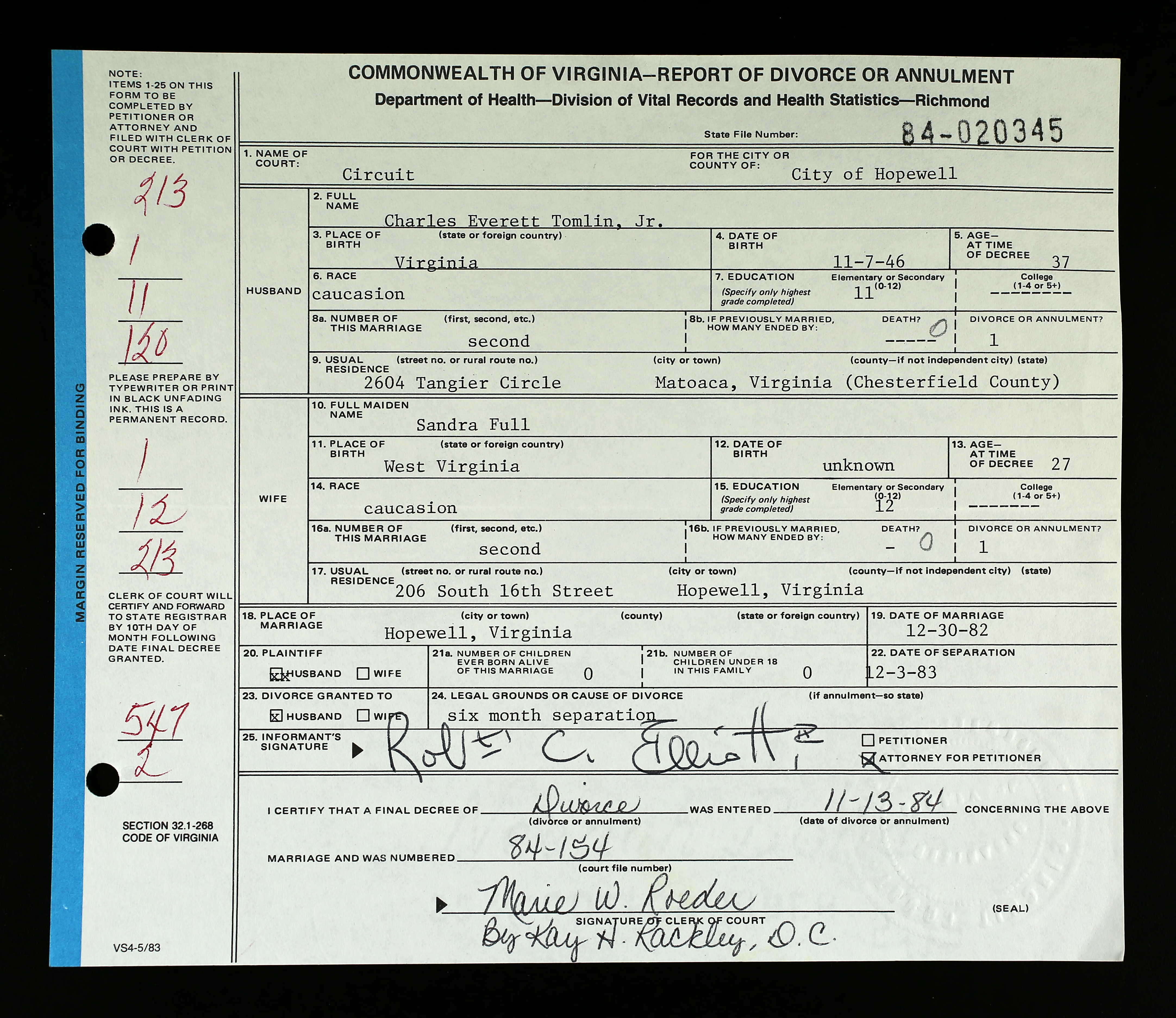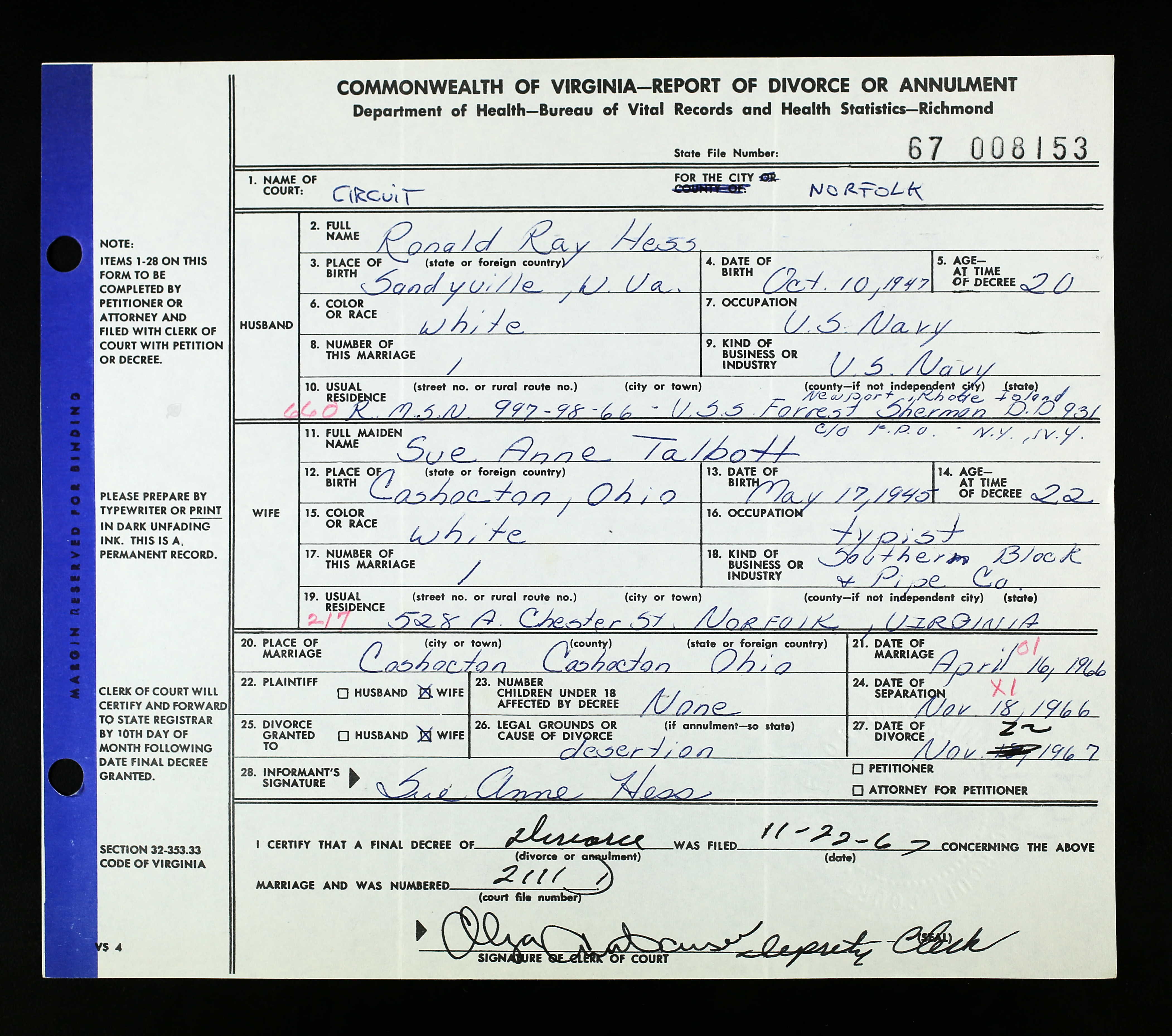 - b. May 23, 1960, Canton, Stark Co., OH