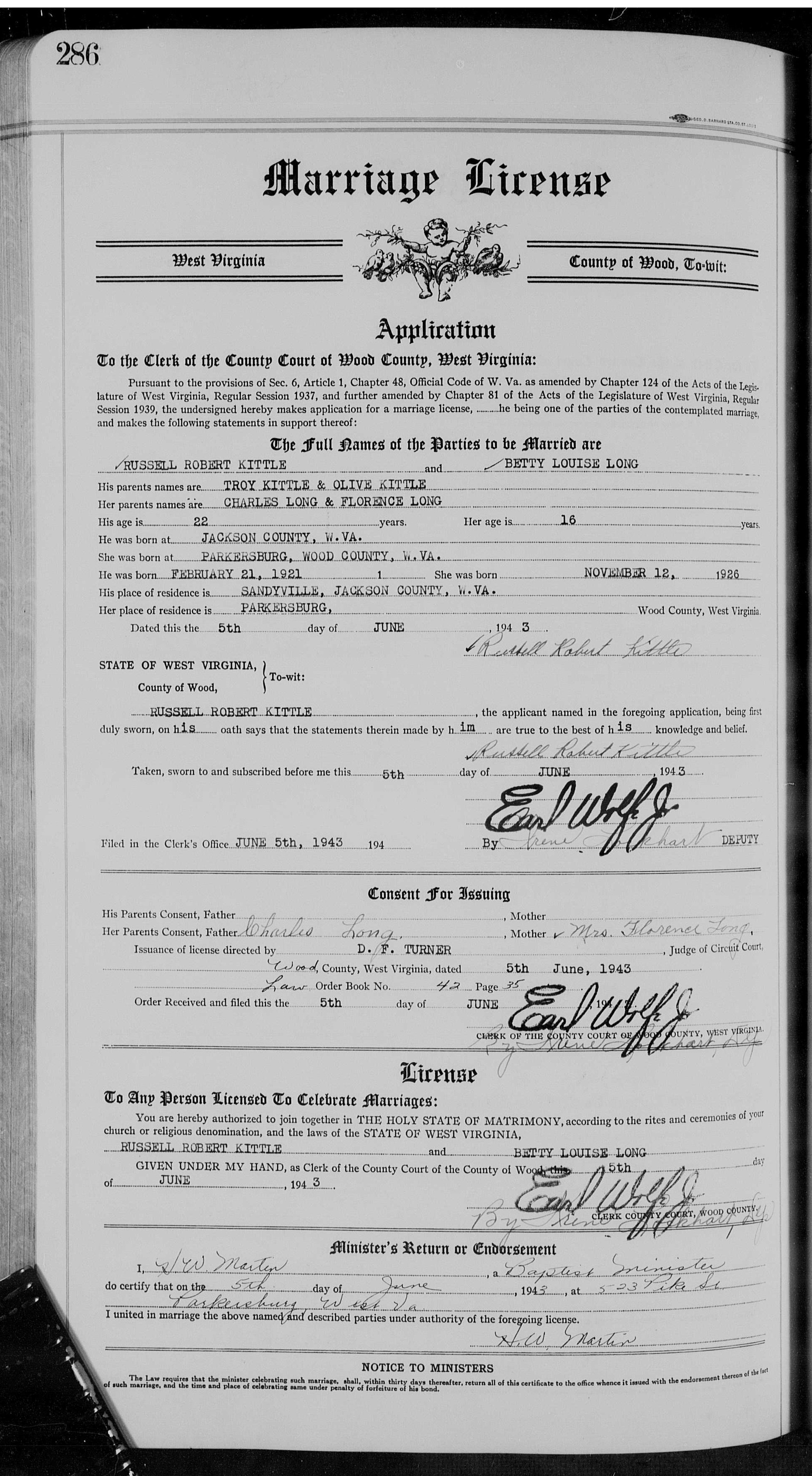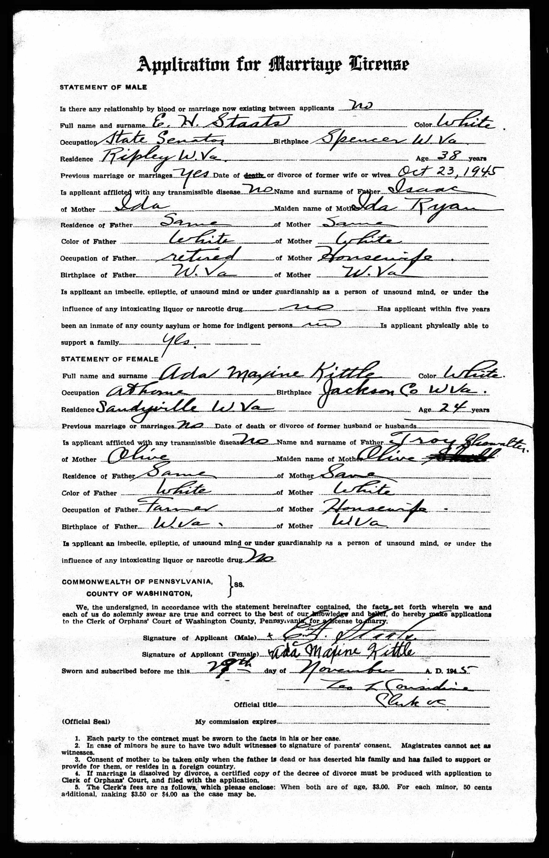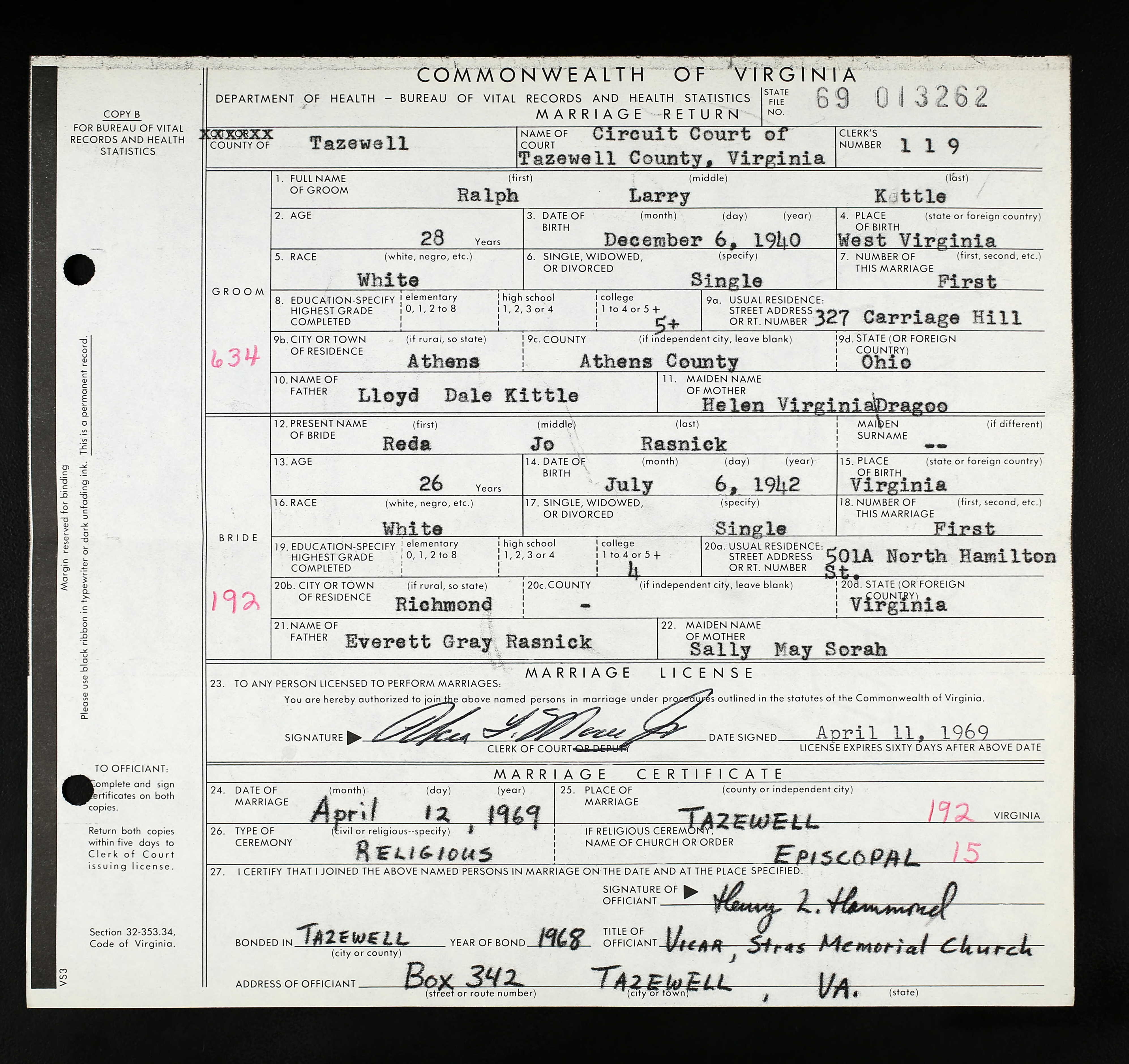 Marriage license for