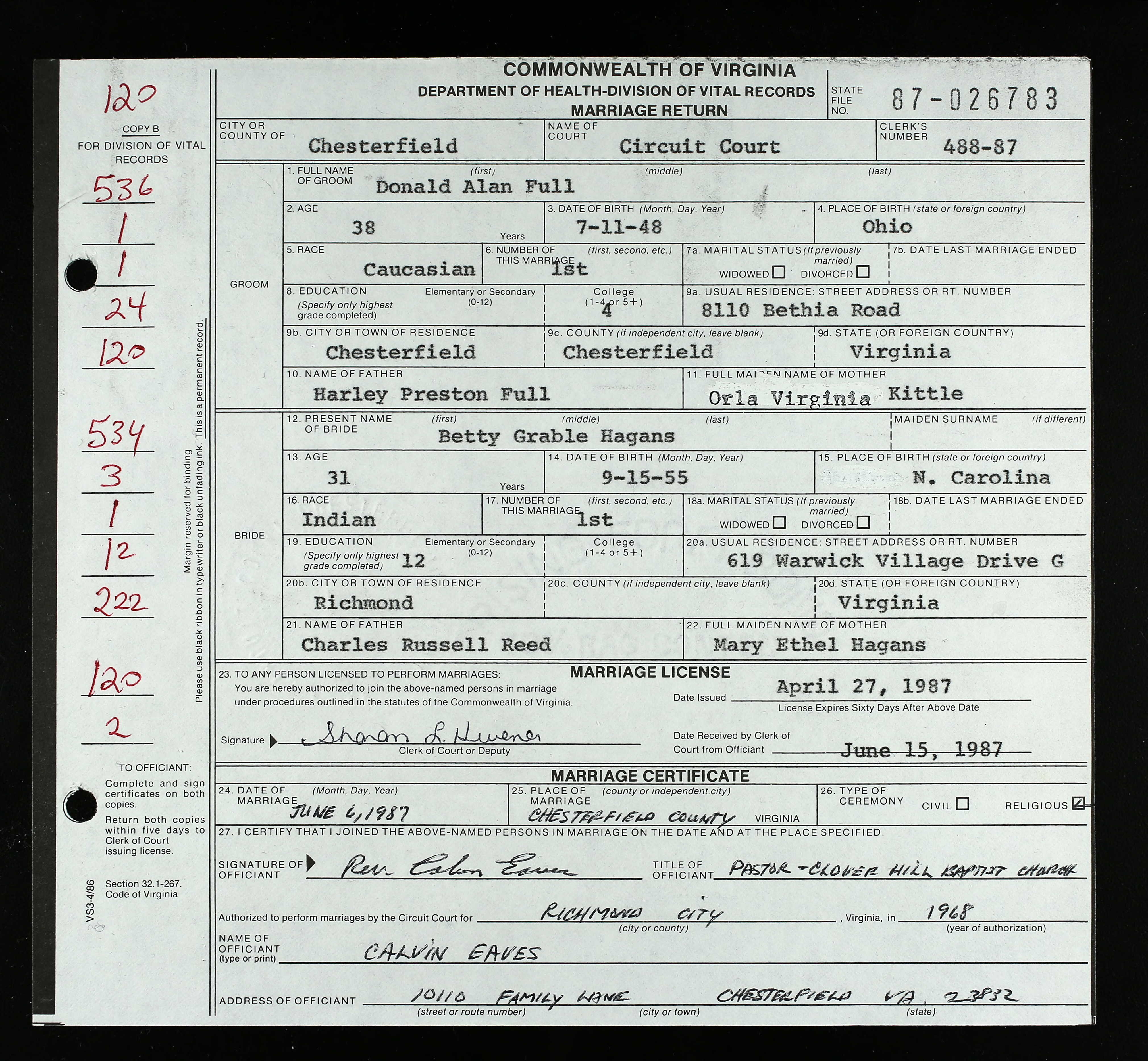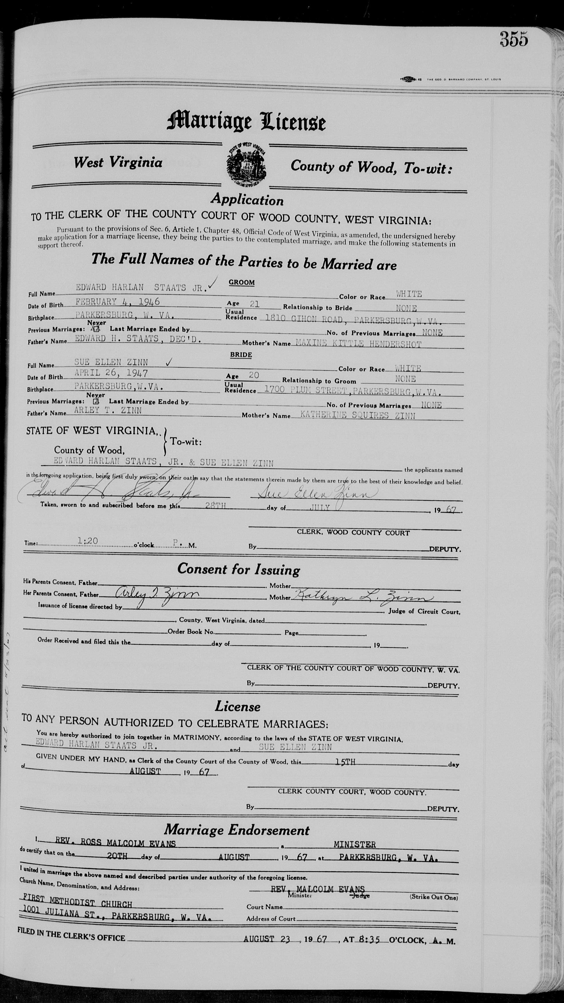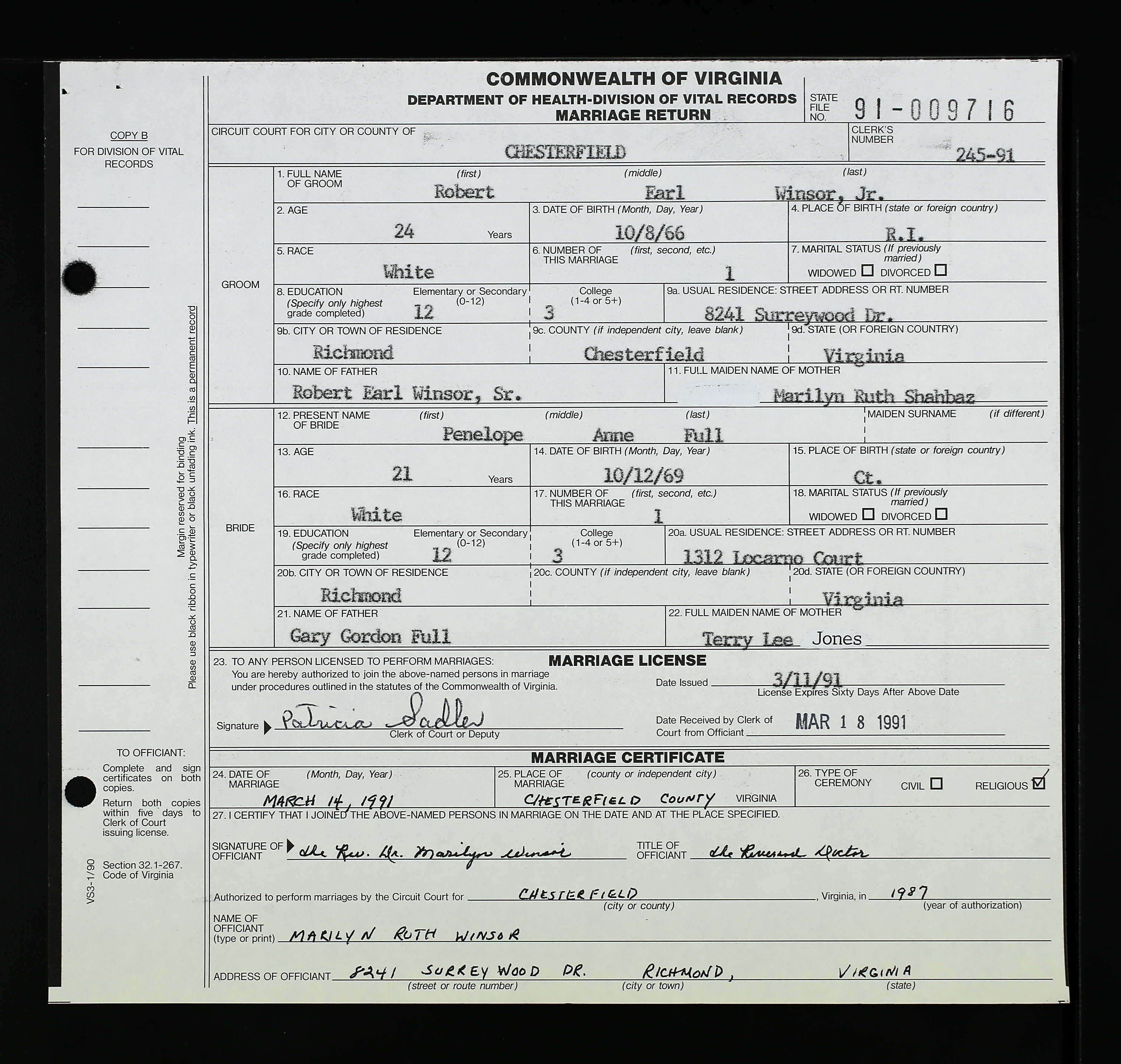 Marriage license for