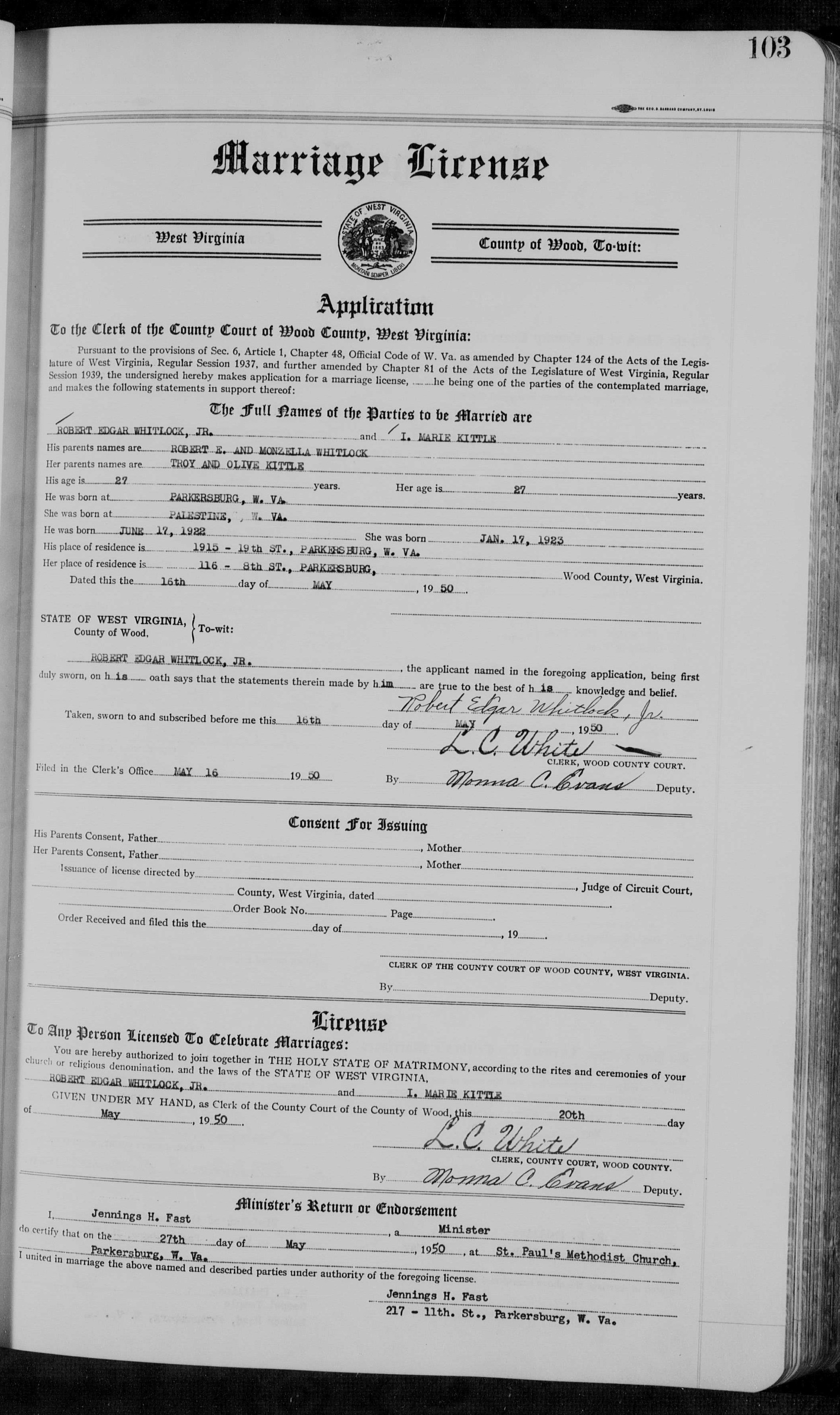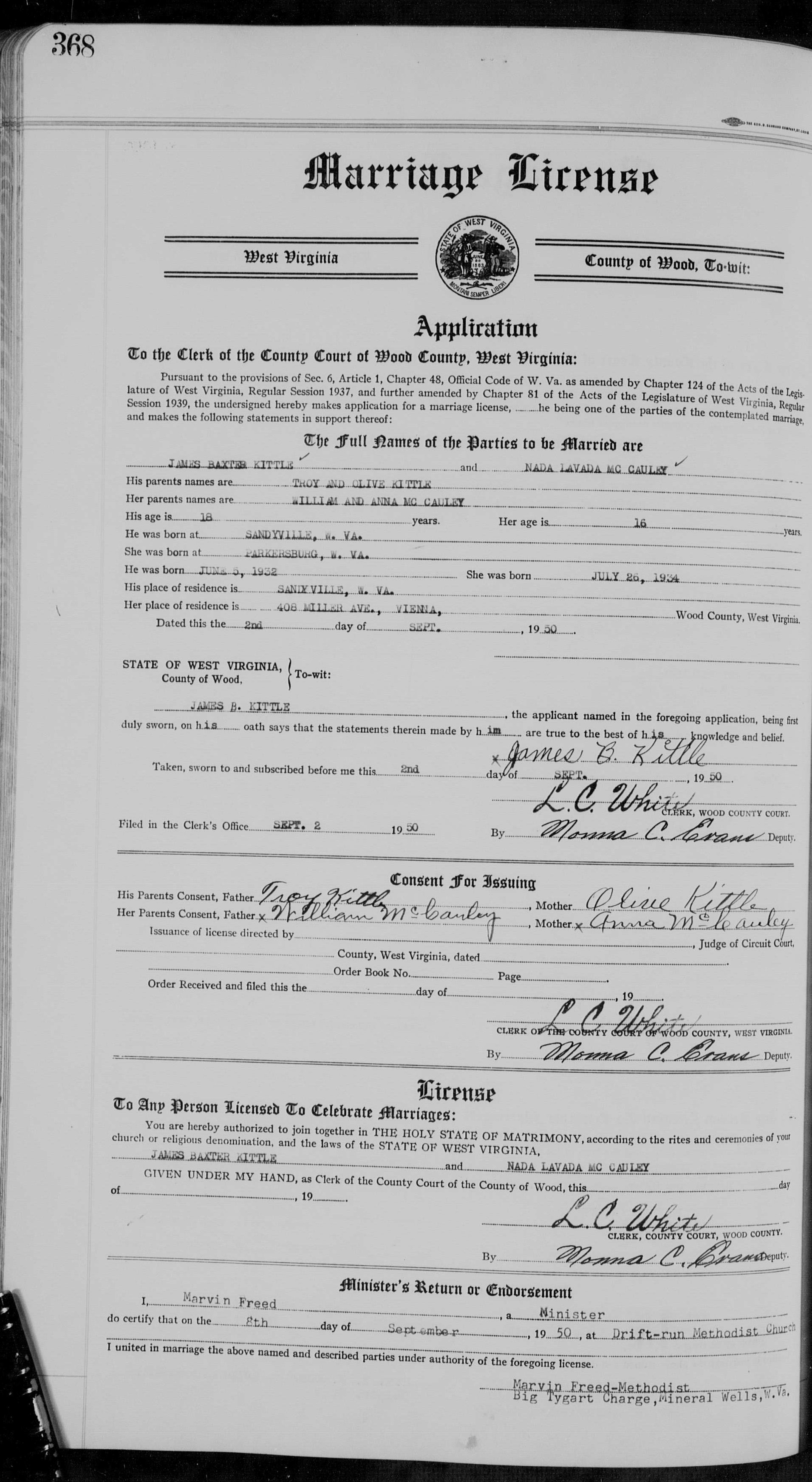 Co., WV. Married again to Marvin P Dowler