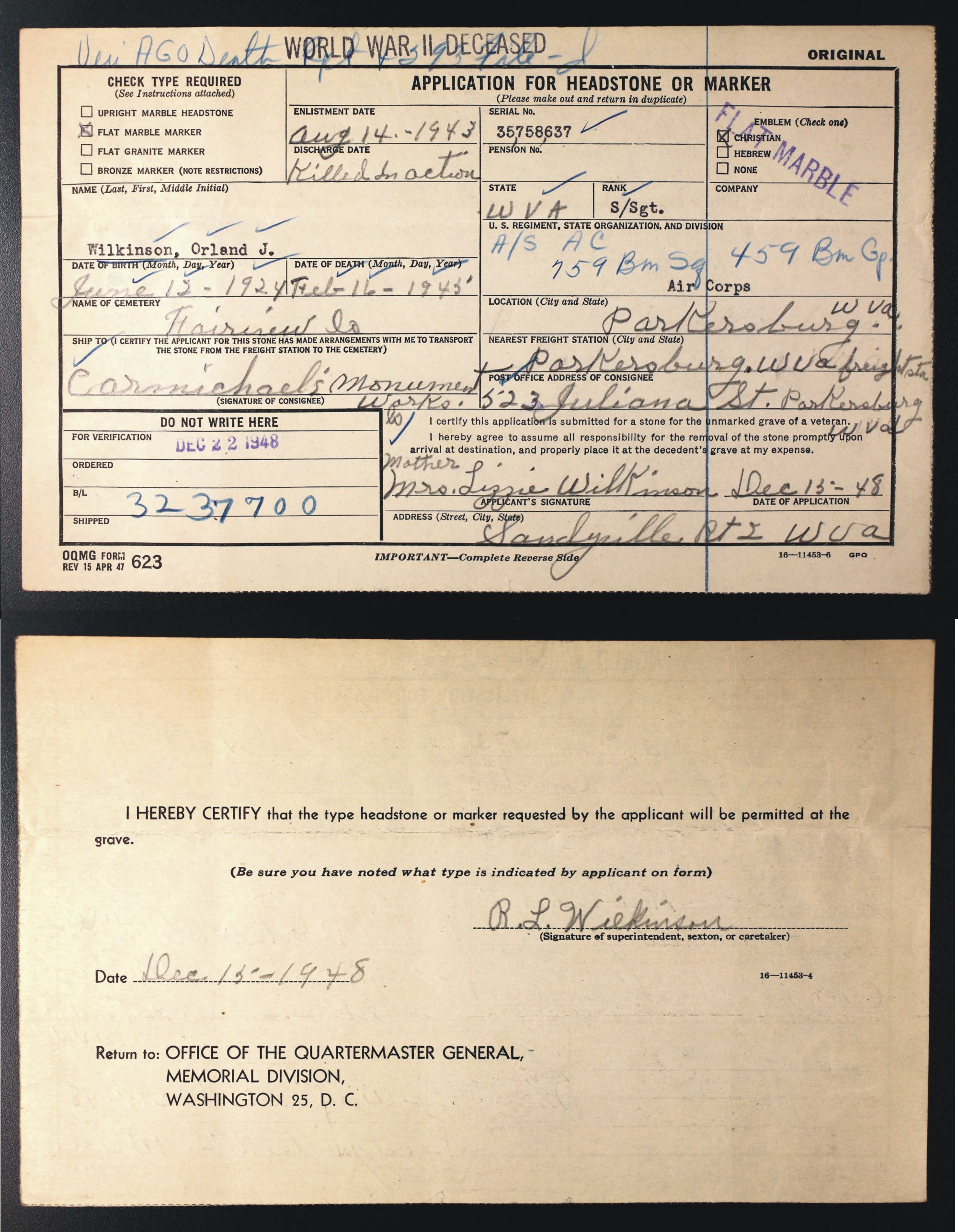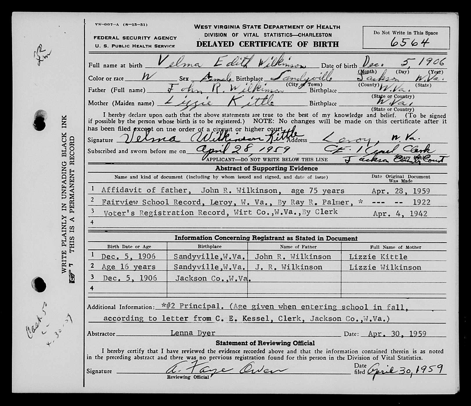 Jul 26, 1886, Jackson Co., WV, son of Enoch Thomas Wilkinson and Julia