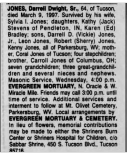 6, 1960, Married again to Patty Ann
