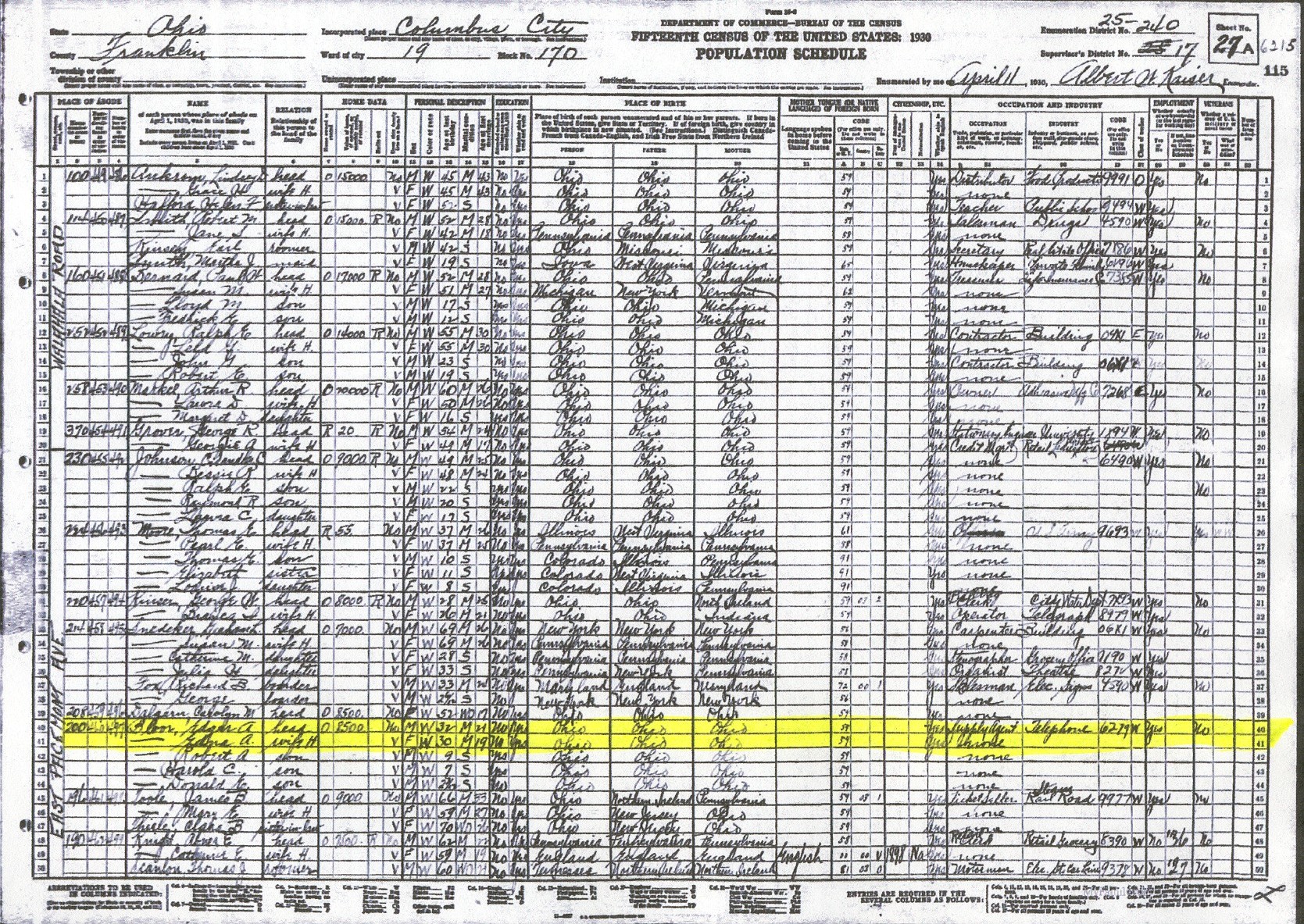 1930 U. S. Census, Fifth Ward, Franklin