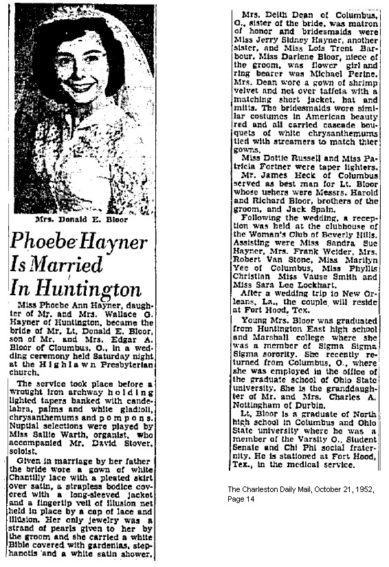 Wedding announcement for Edgar Allen Bloor's son.