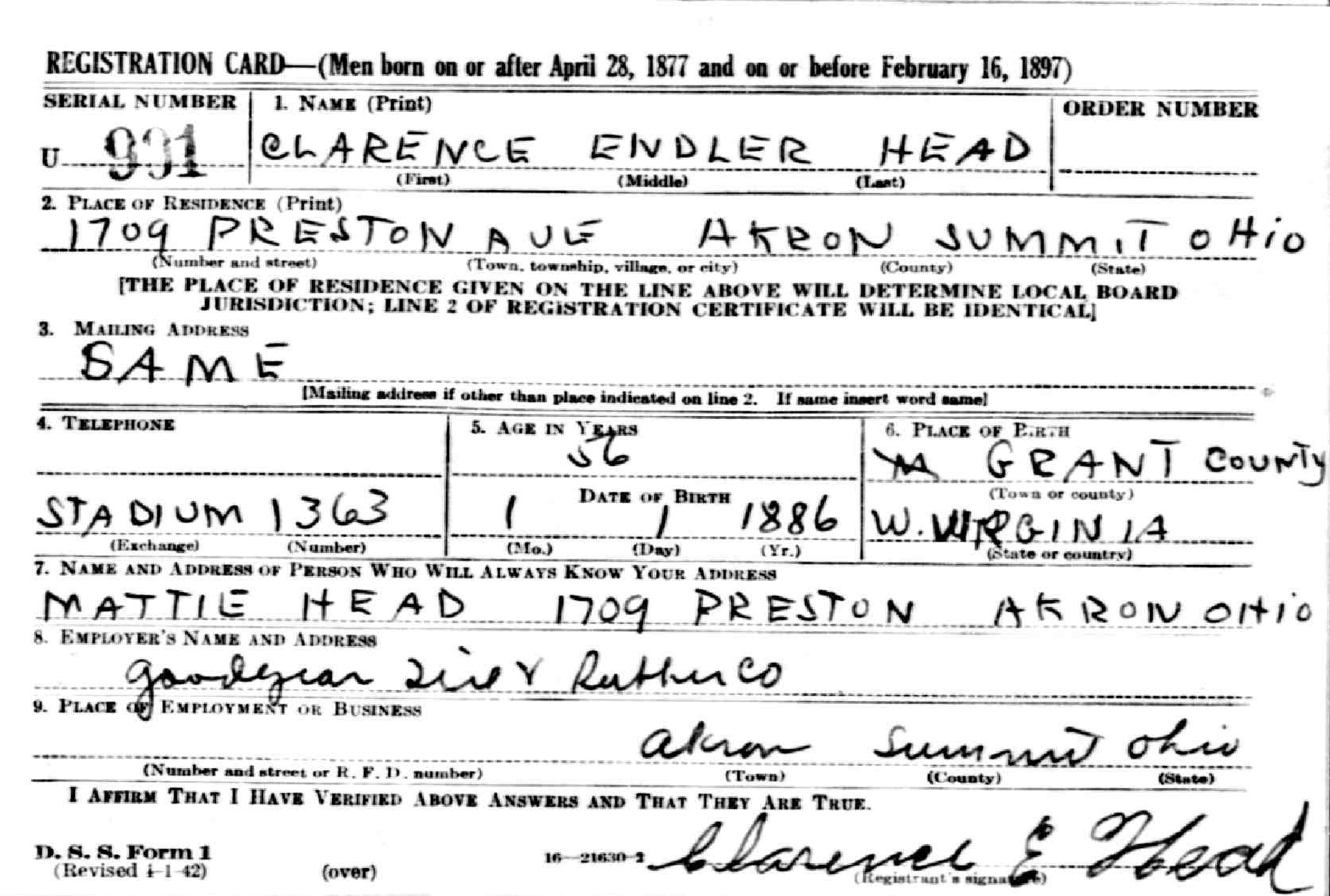 (Jan 1, 1886, Grant Co., WV son of Charles W and Mary V. Head; d. June 17,