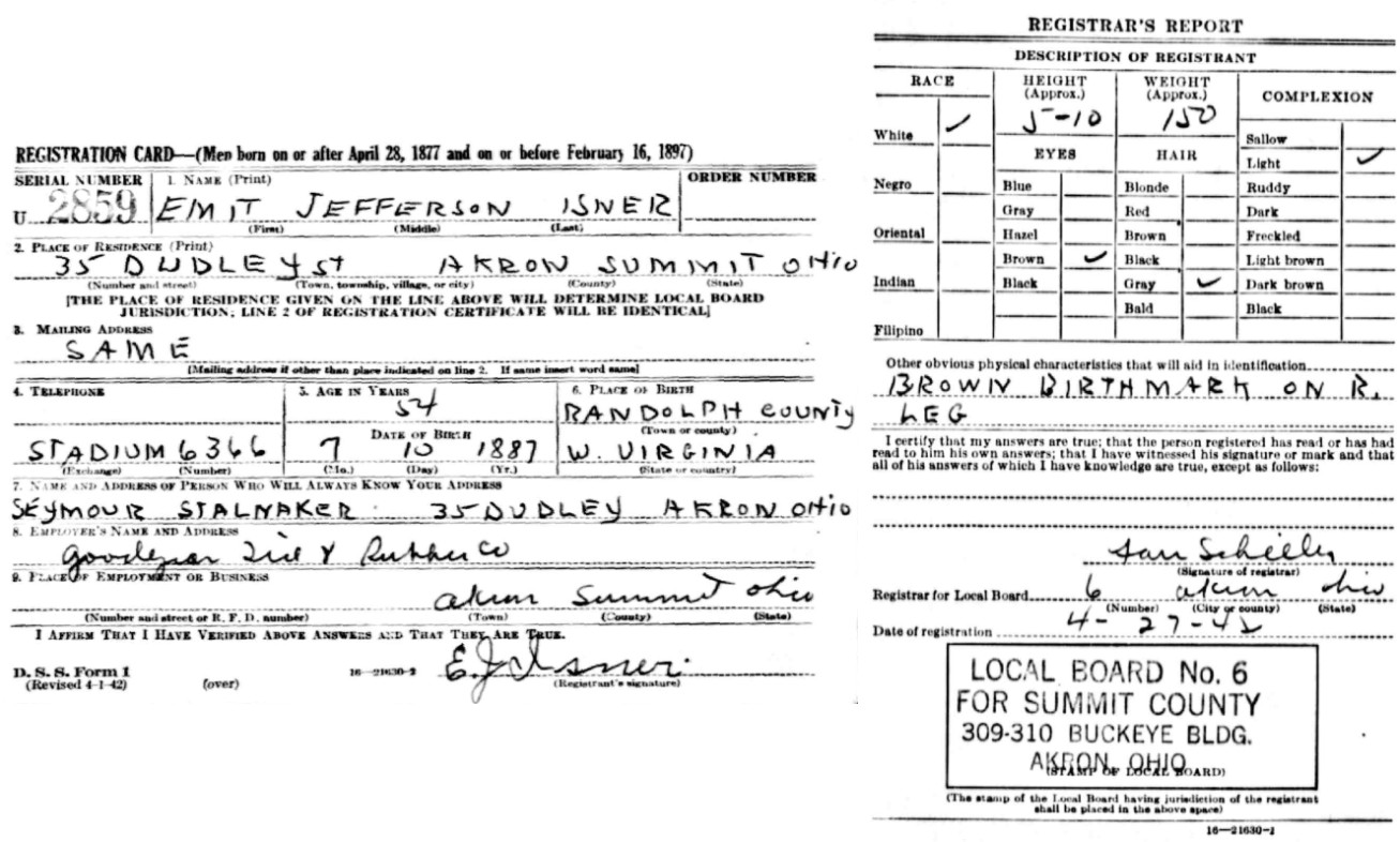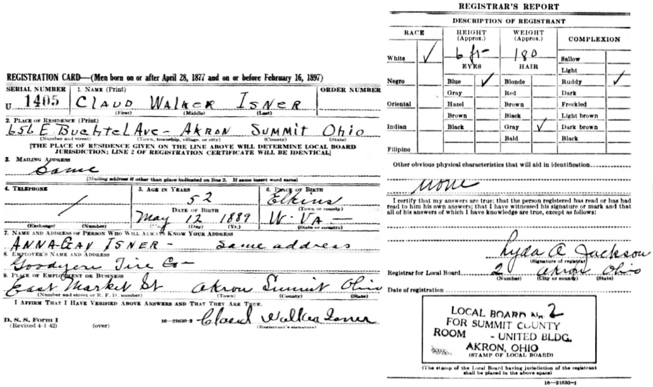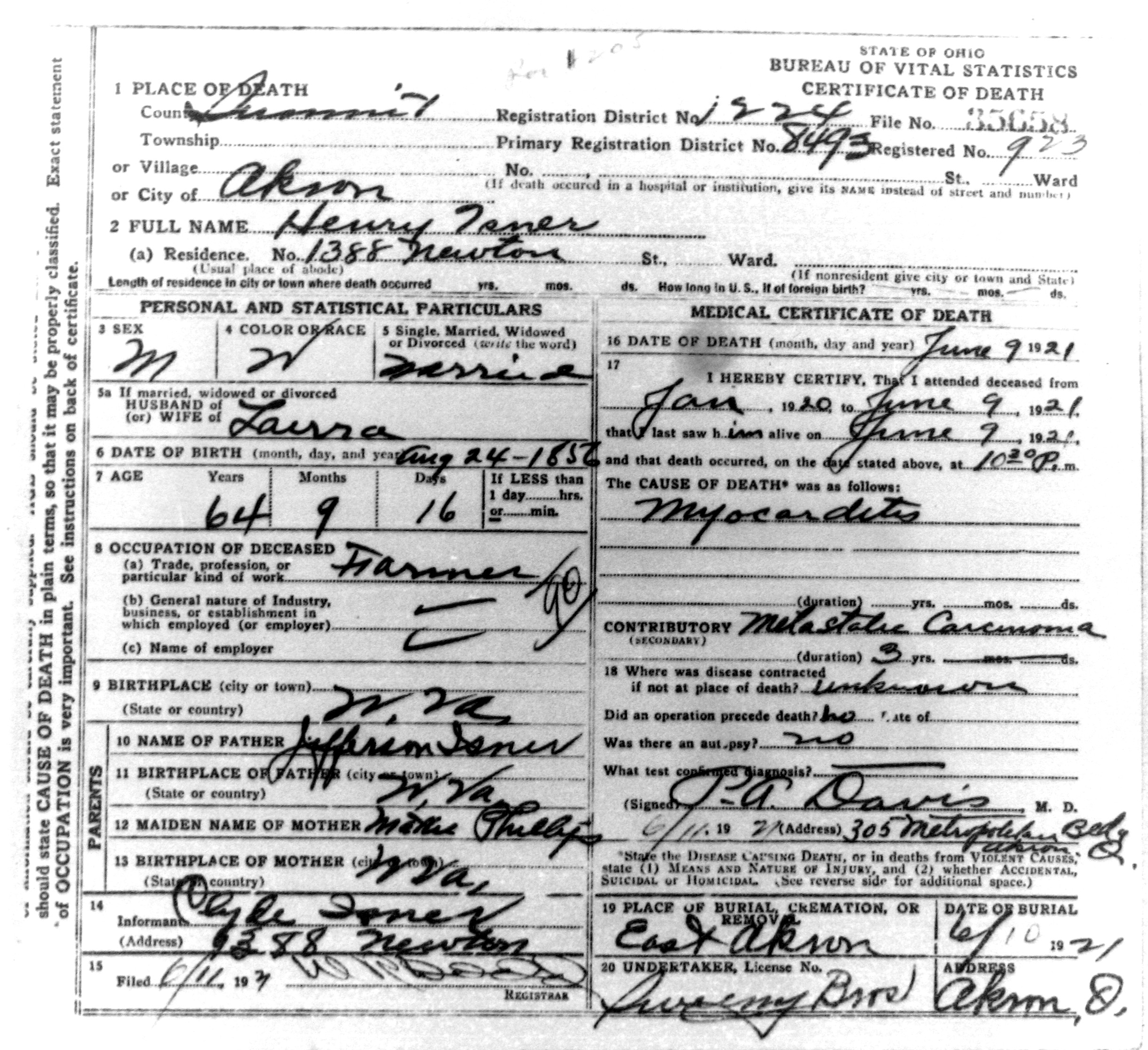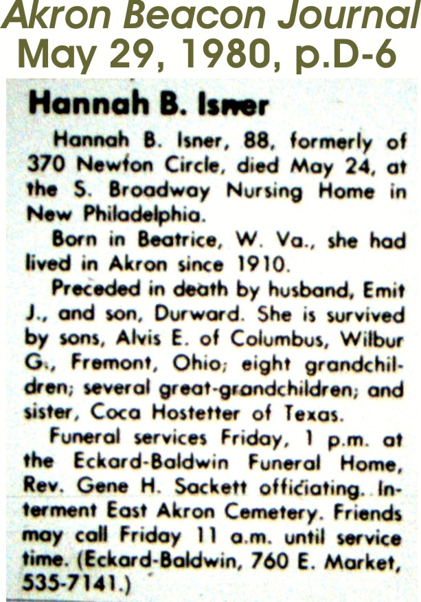 1953, Akron, Summit Co., OH) Jun 10, 1916, Cumberland, Allegany Co., MD |