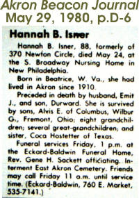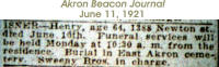 Akron, Summit Co., OH; Buried at East Akron Cemetery |