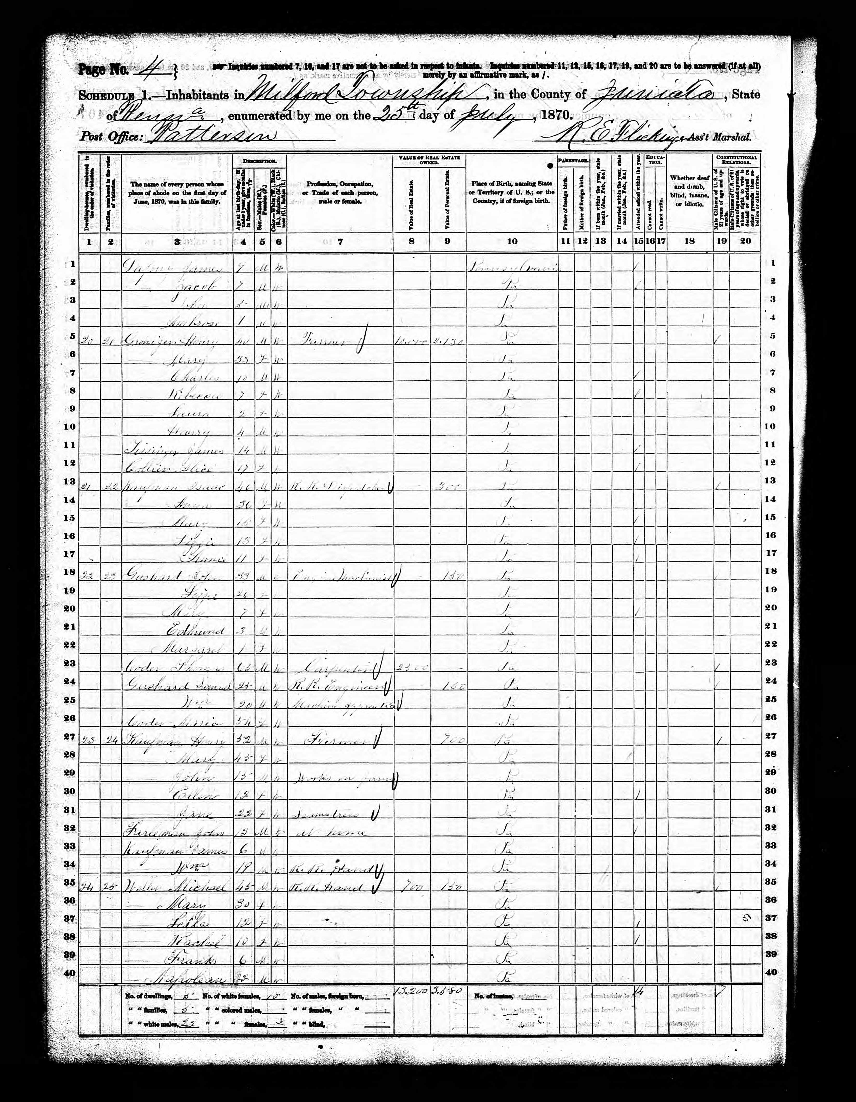 1850 U. S. Census, Milford Township, Juniata County, Pennsylvania