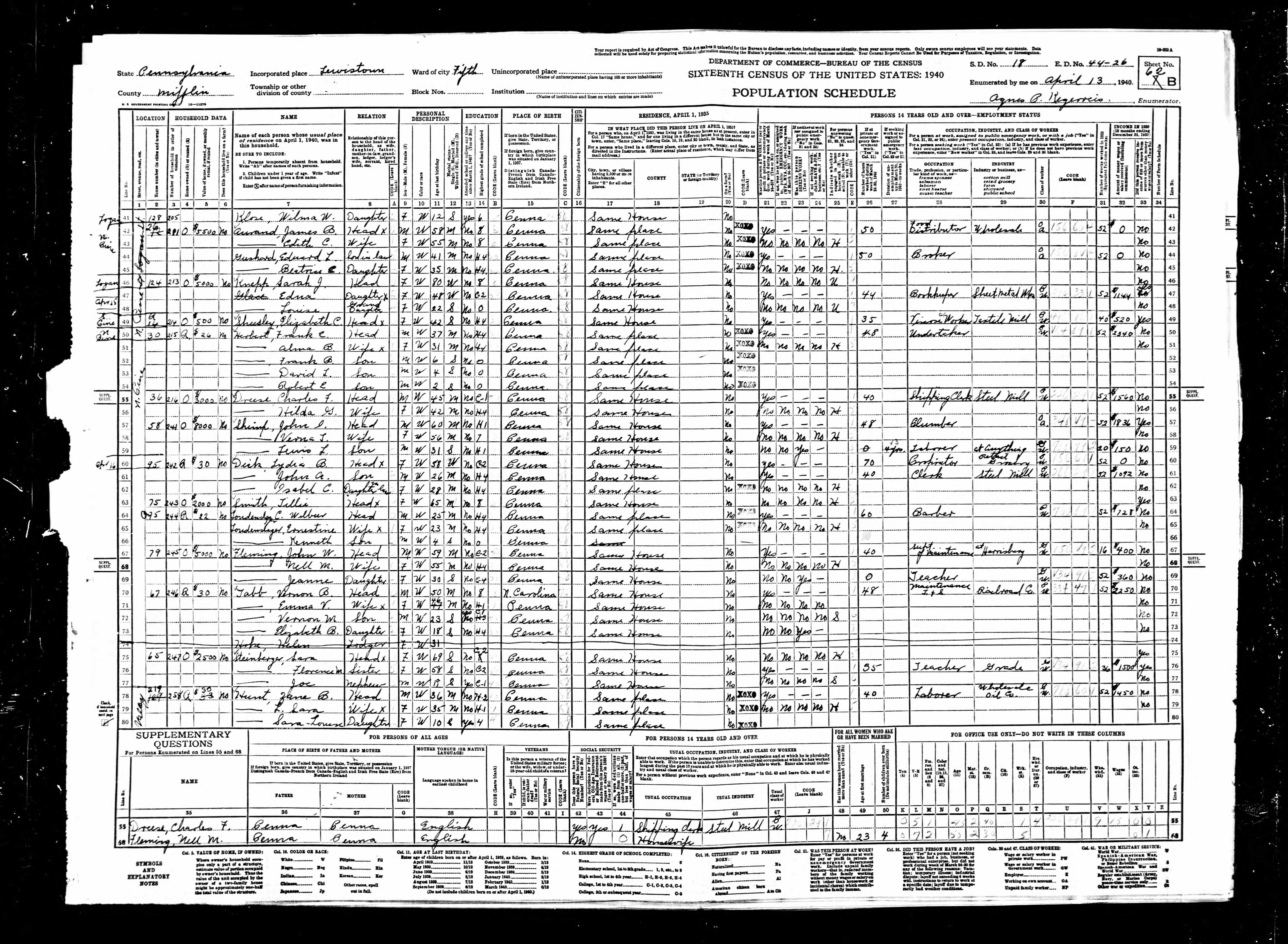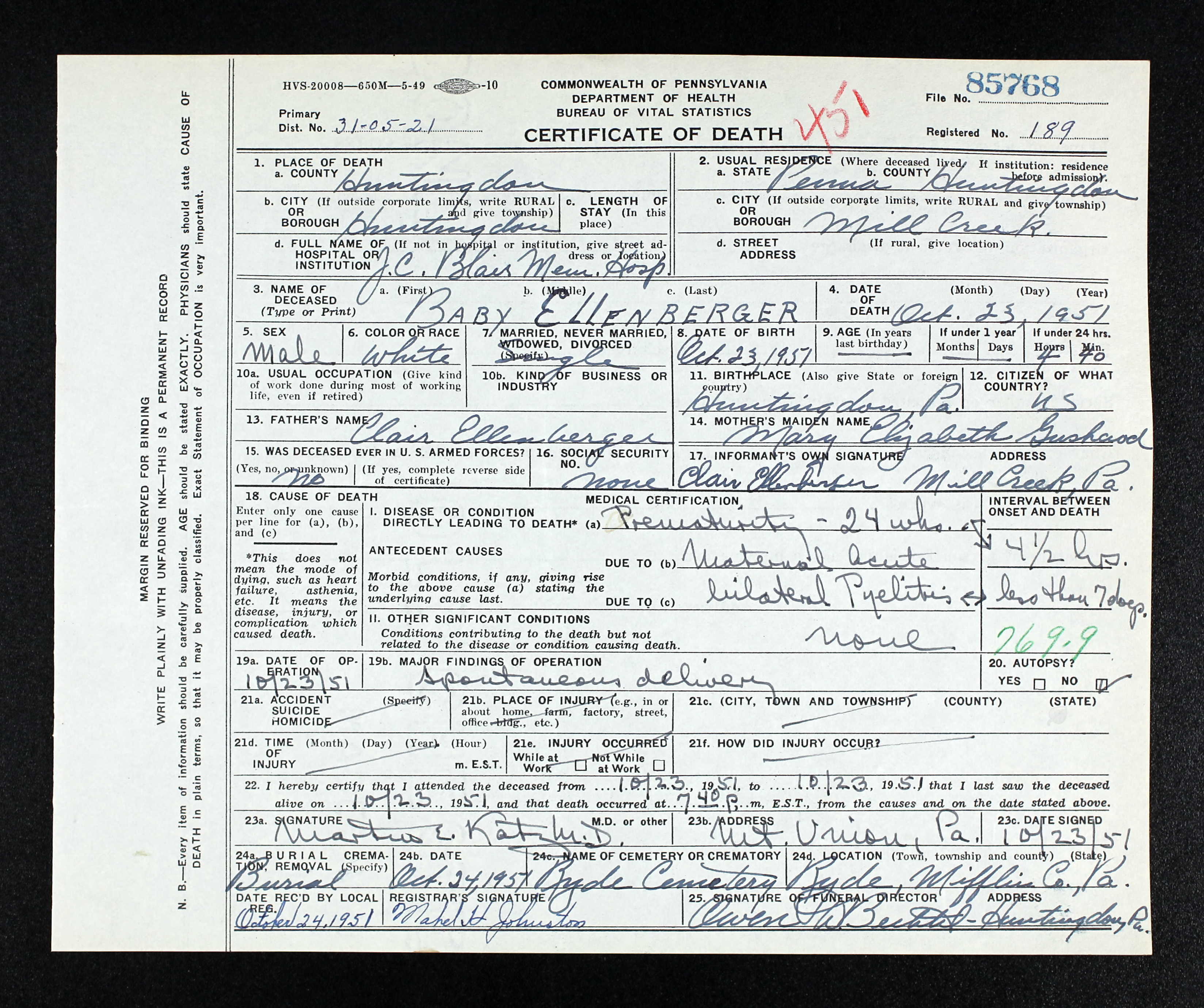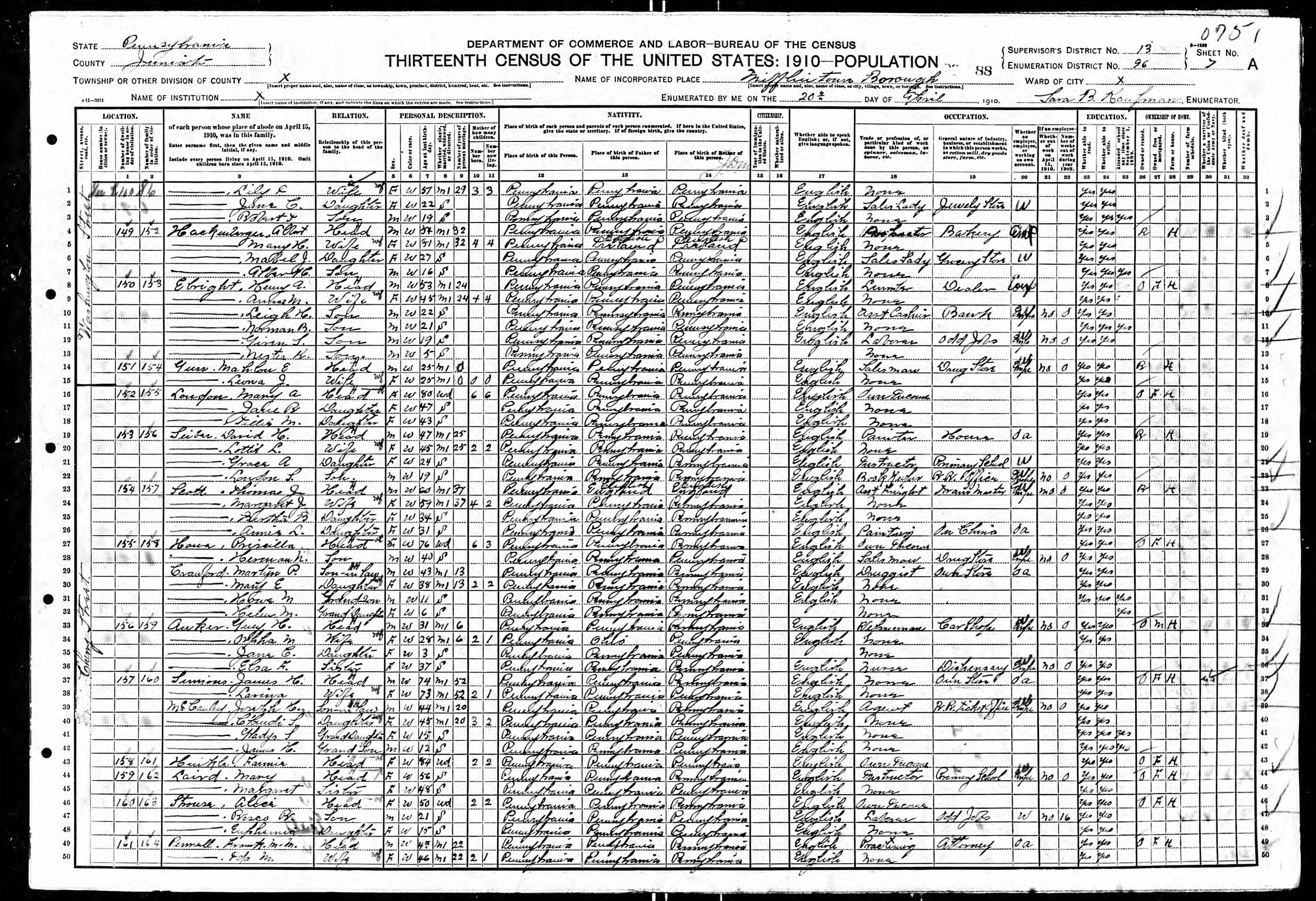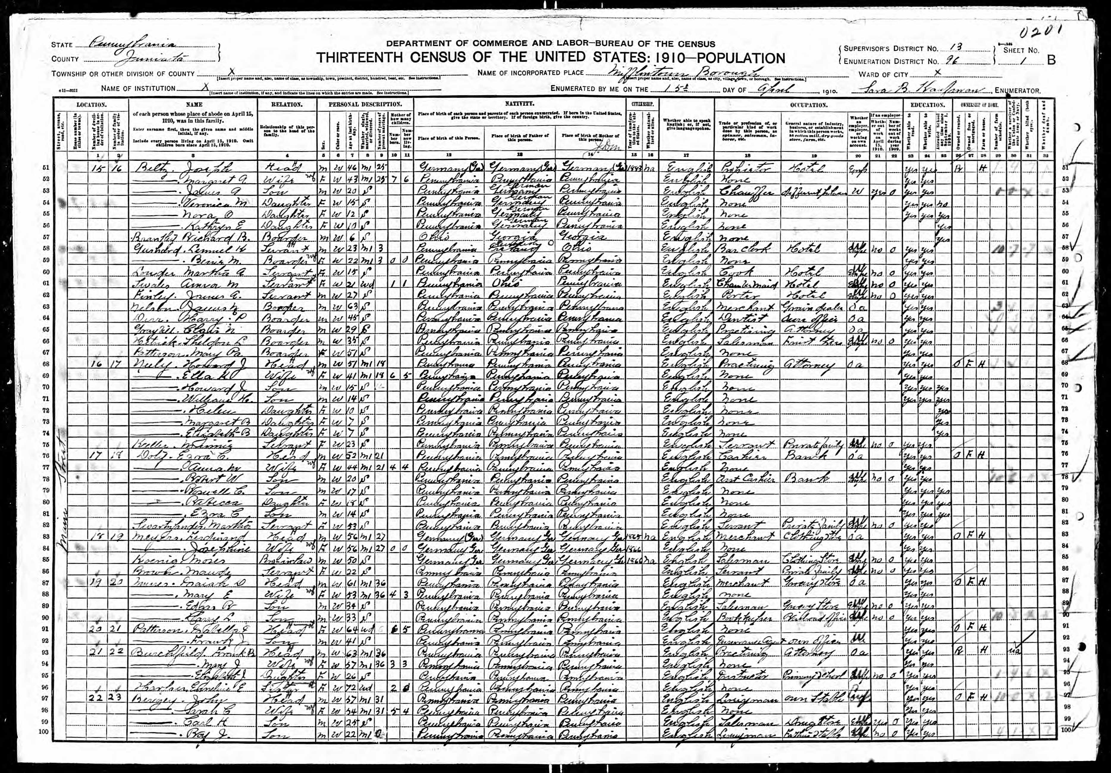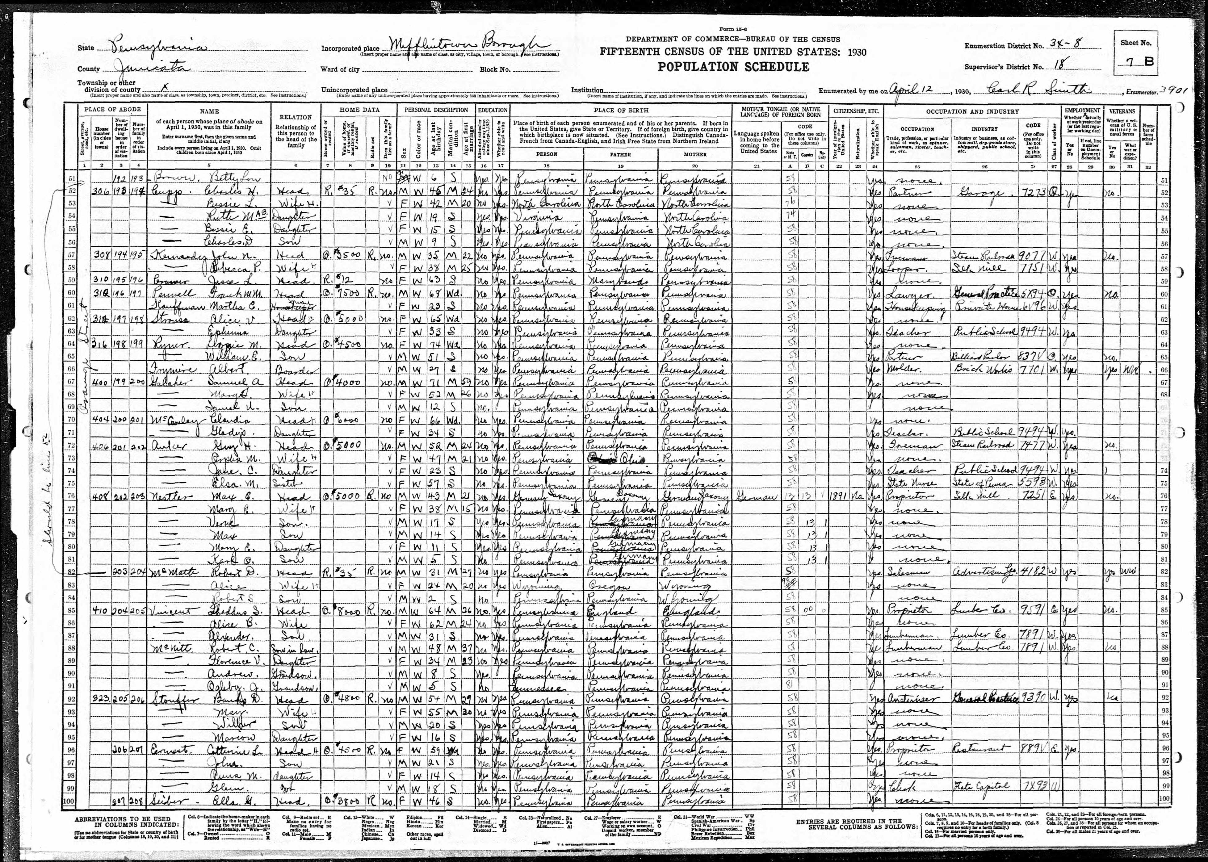 - b. Jul 26, 1886, Mifflintown, Juniata Co., PA;
