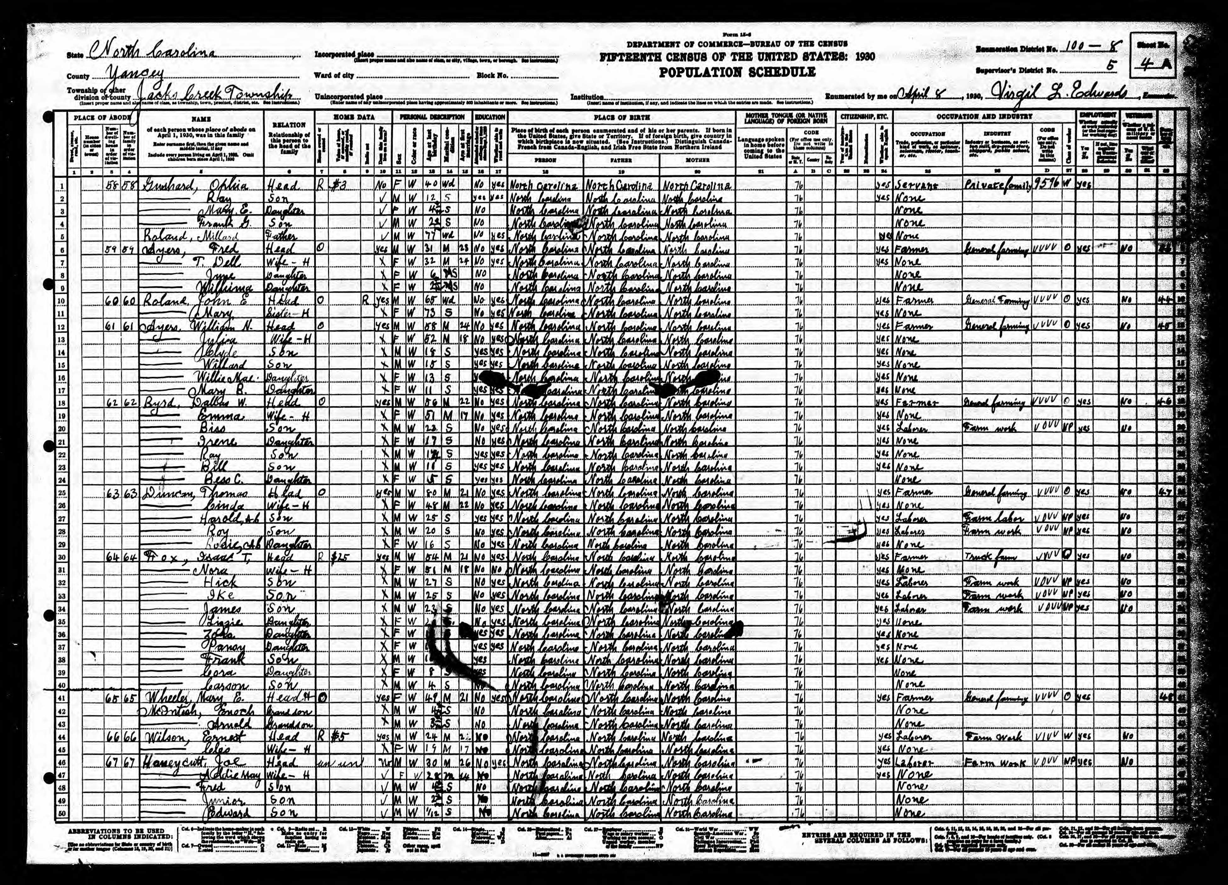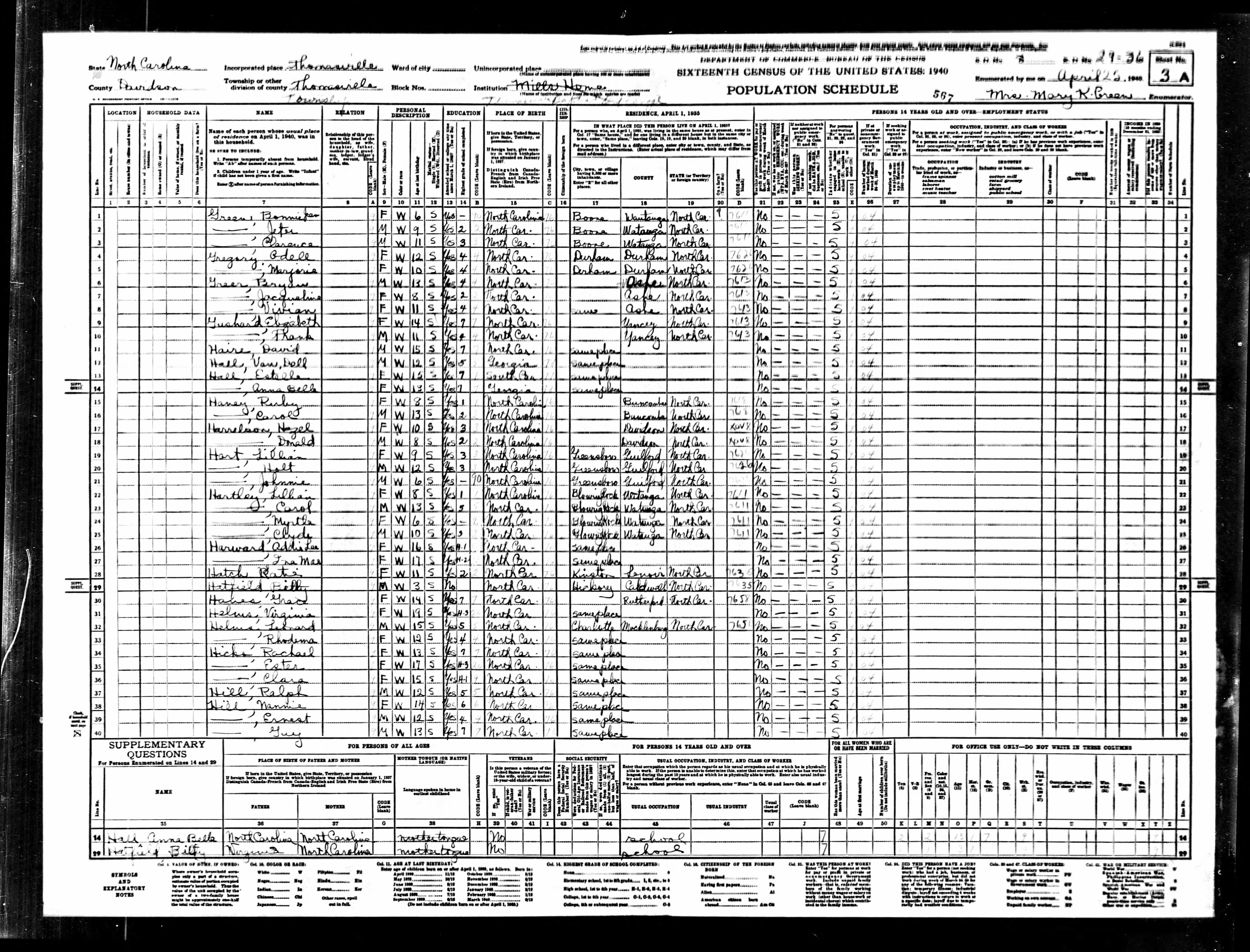 See Census Sheet |