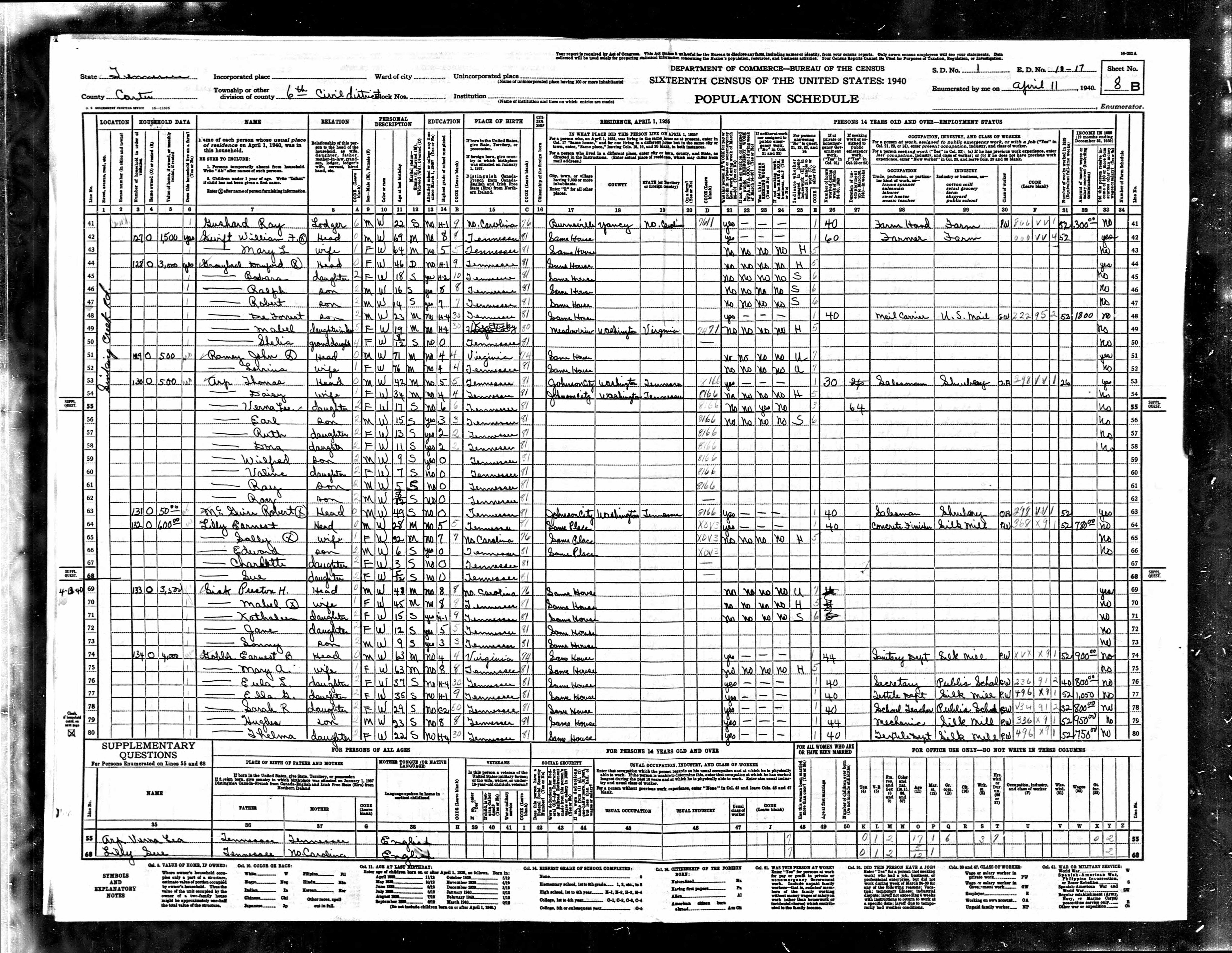 - Census - Lemuel and Bessie are living in a hotel where Lemuel