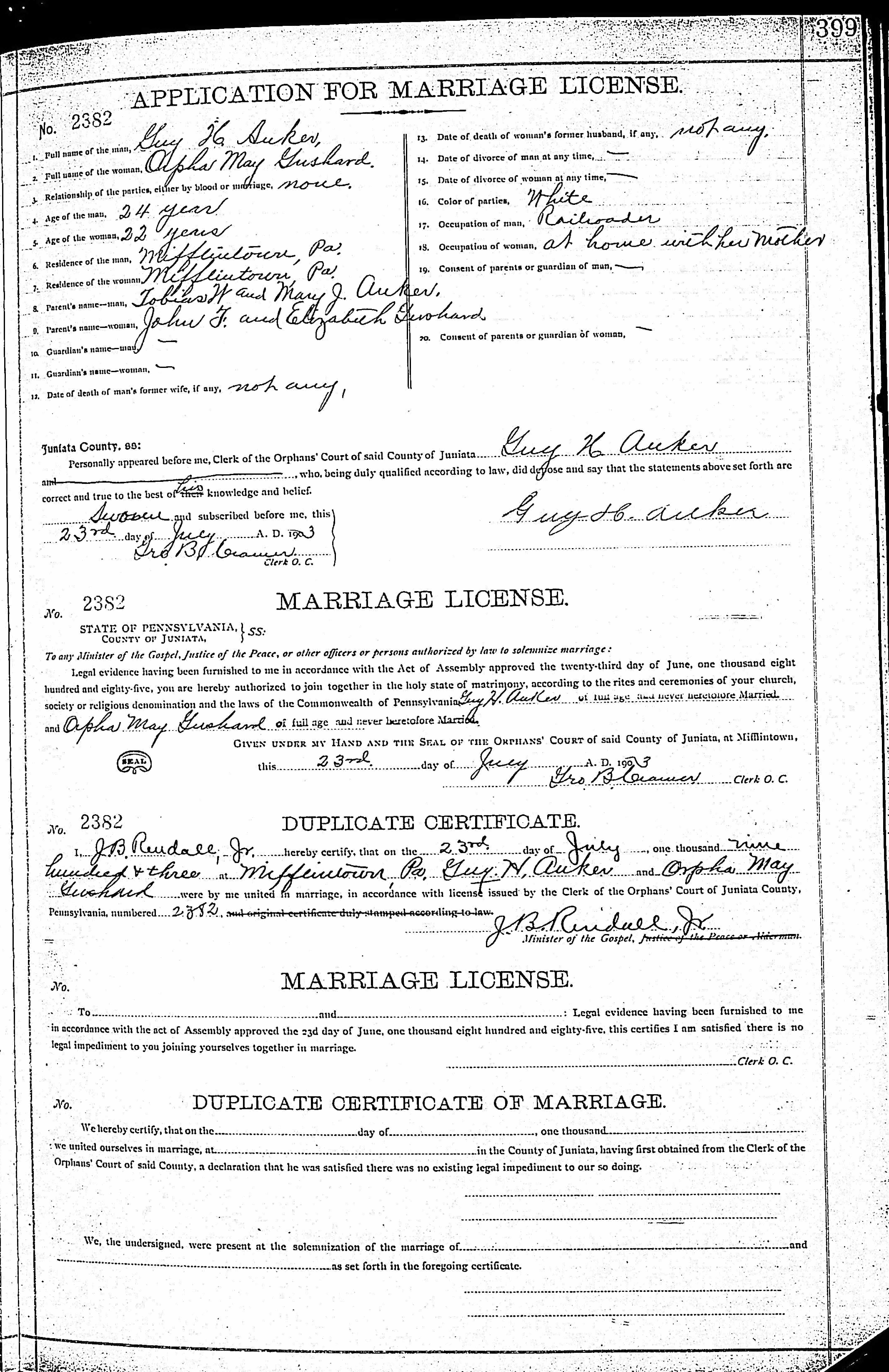 Juniata Co., PA -- Divorced June 4, 1914. |