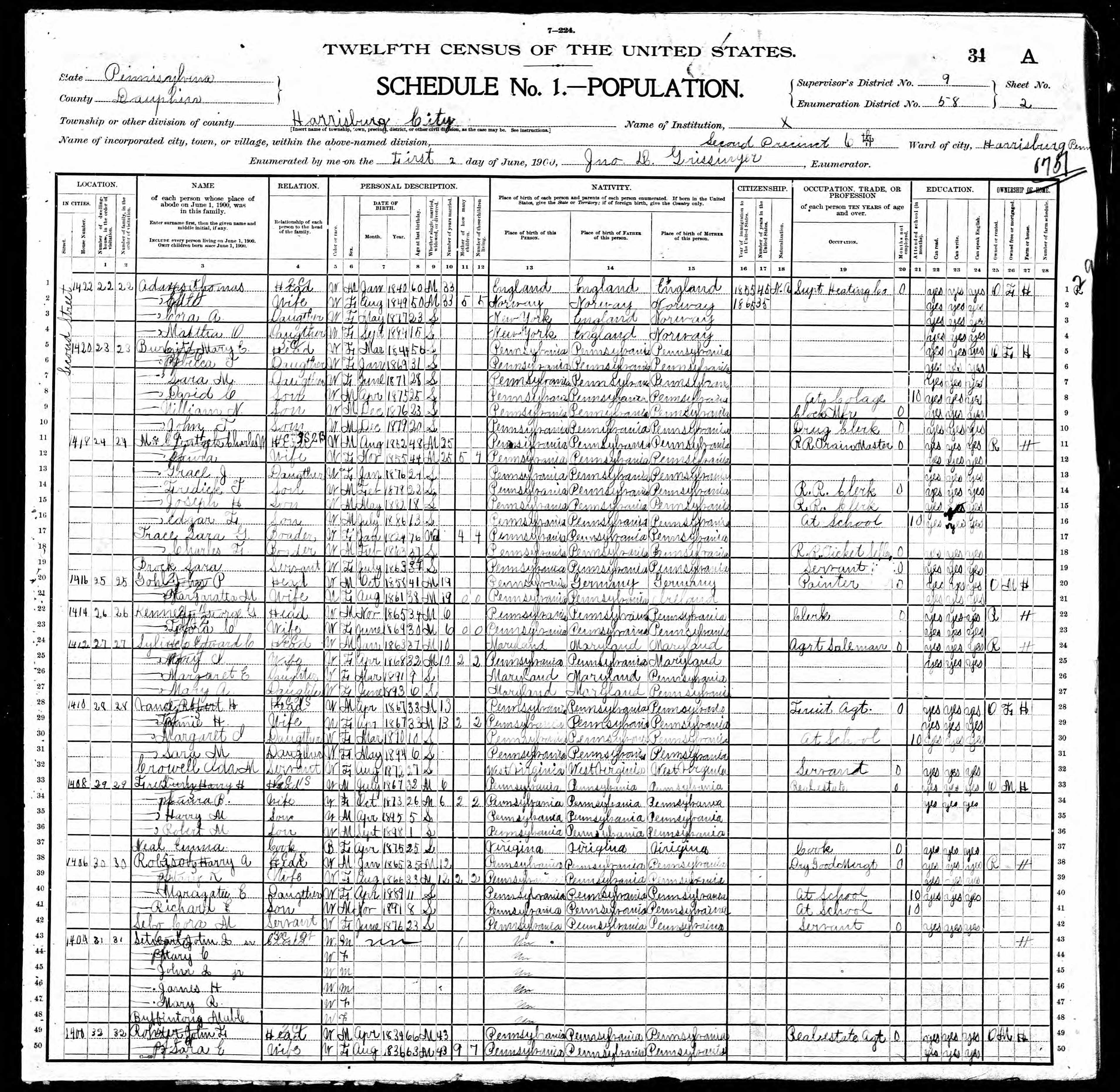 1940 U. S. Census, Harrisburg, Dauphin