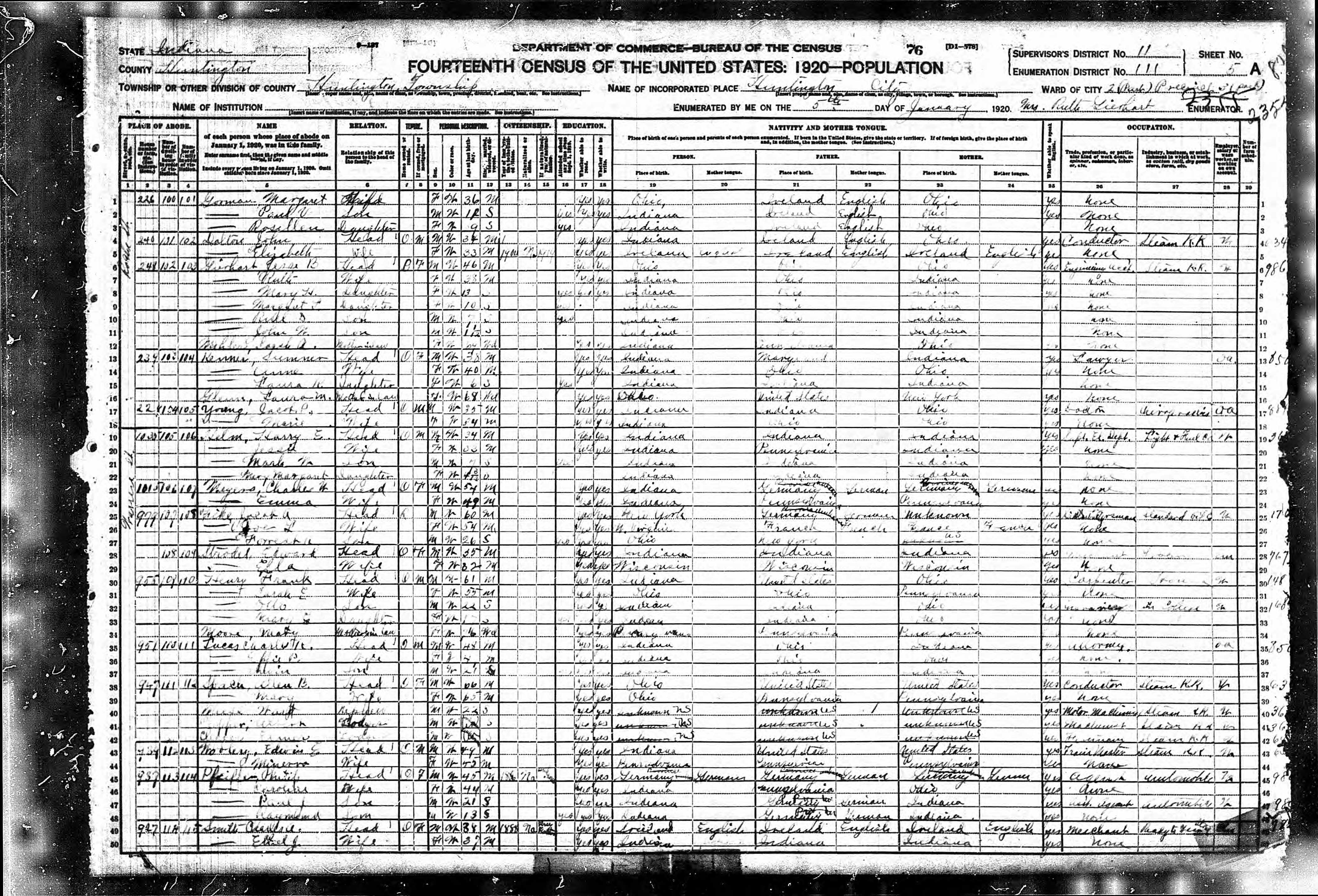 1920 U. S. Census, Huntington,