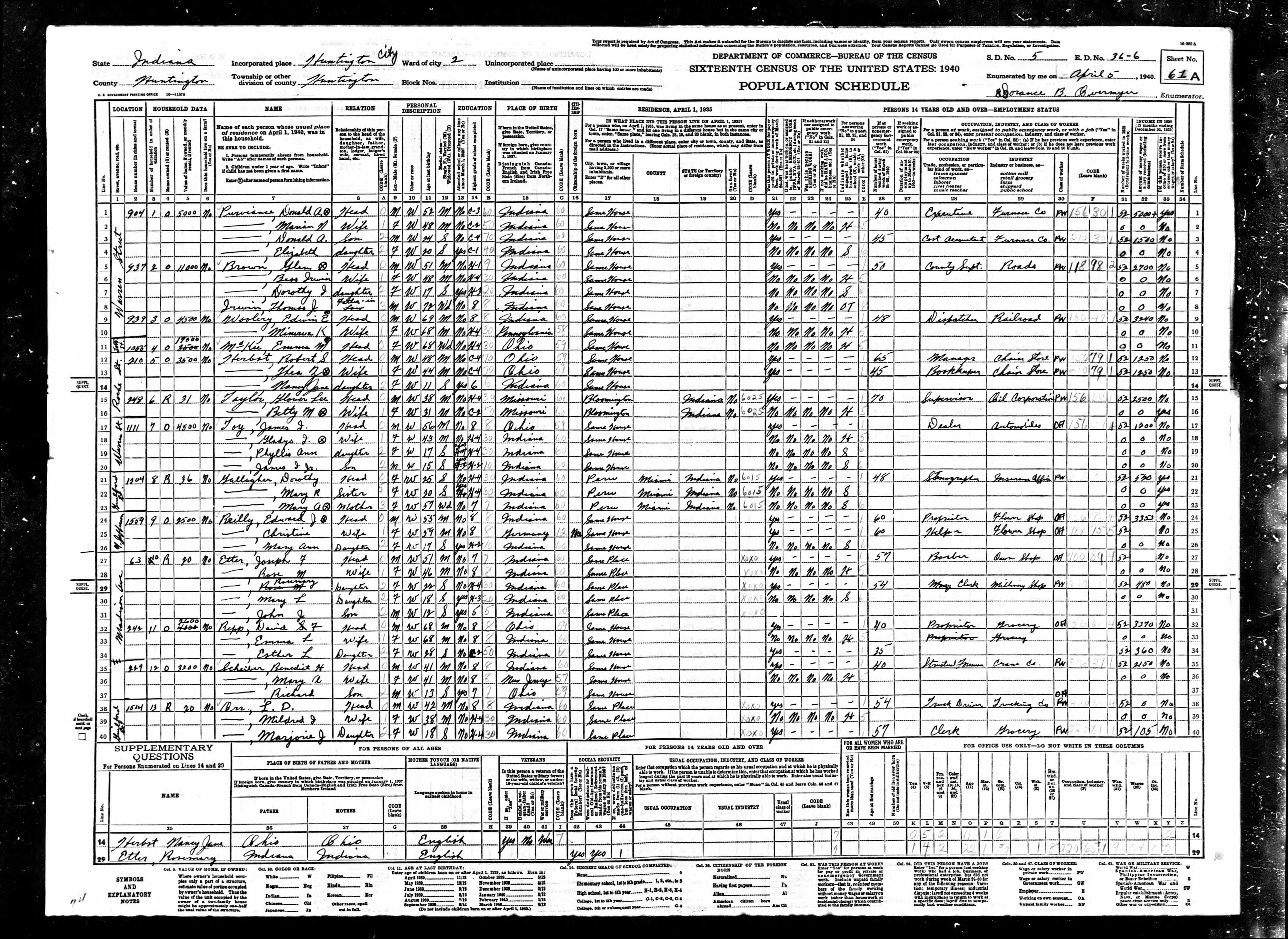 1940 U. S. Census, Huntington,