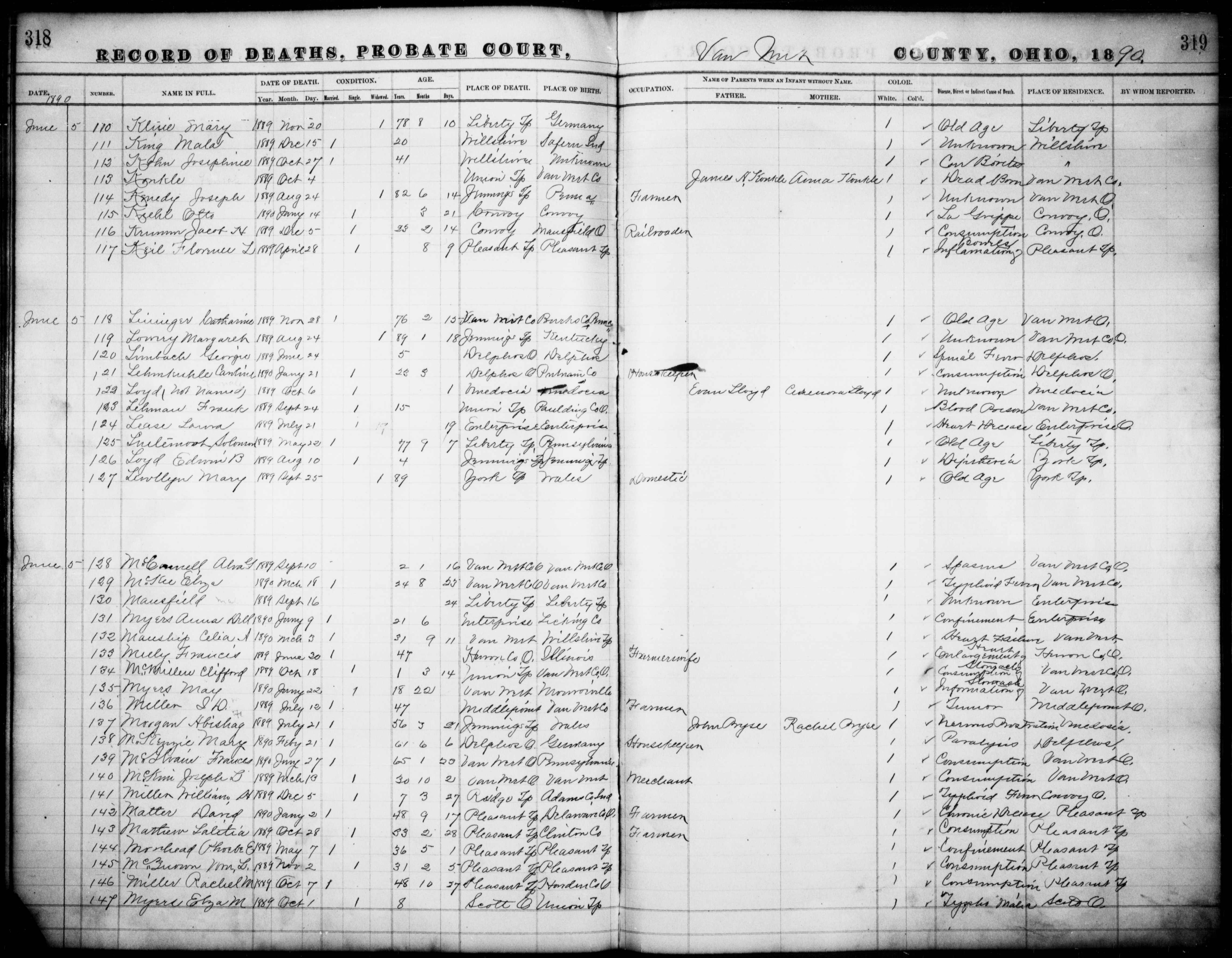 Both buried at New Salem Cemetery, Auglaize, OH |