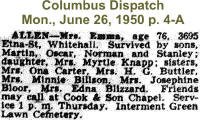 Stanley and Oscar Allen; sister, Mrs. Myrtle Knapp.