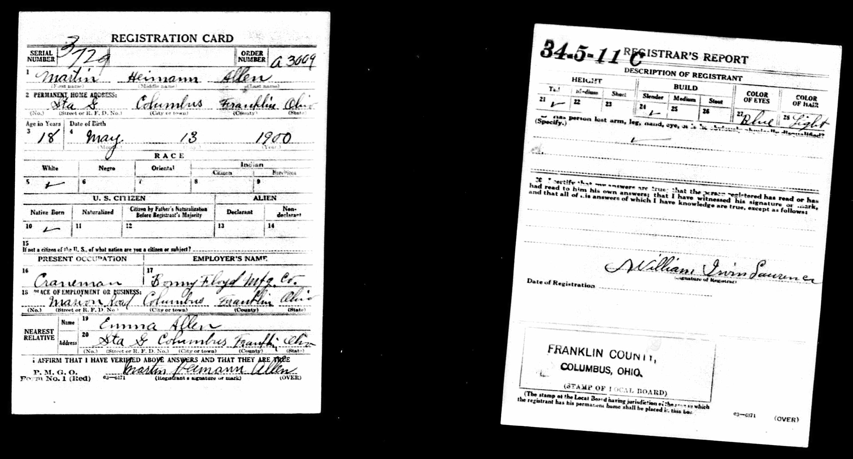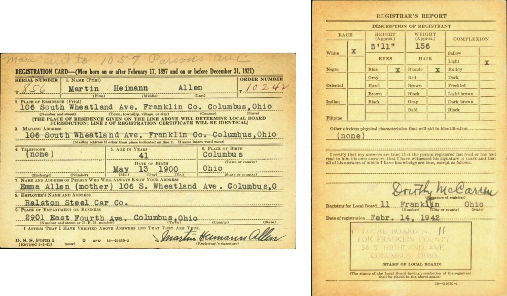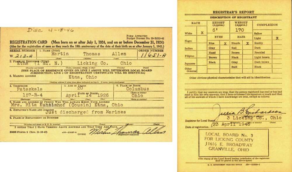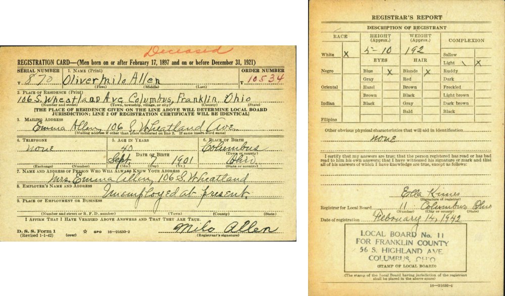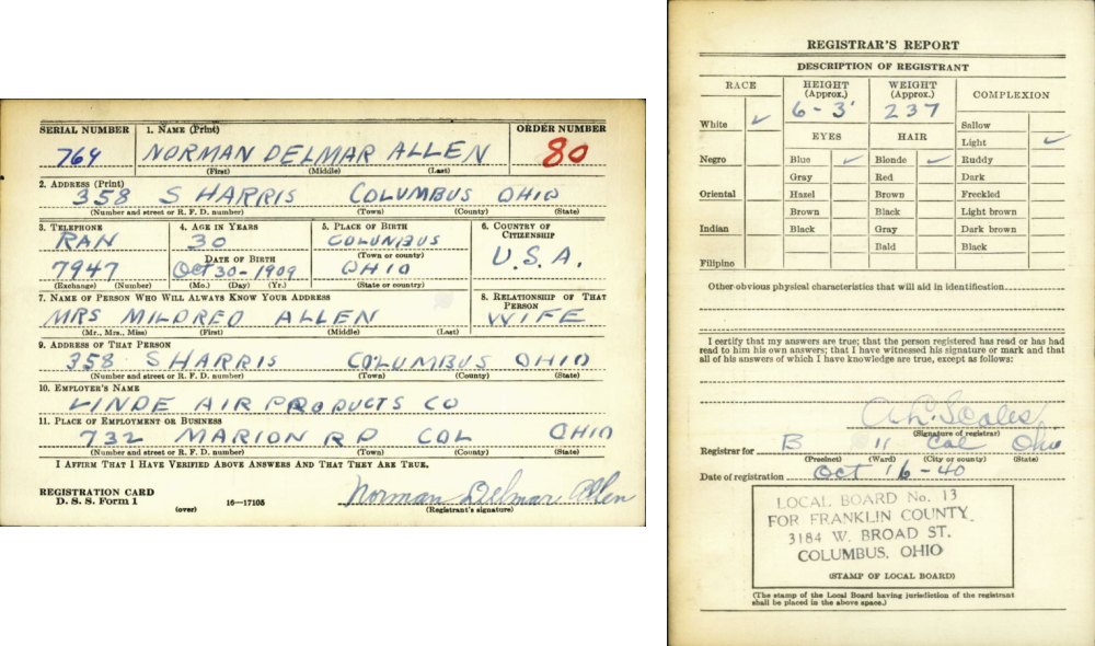 WWII Registration Norman Delano