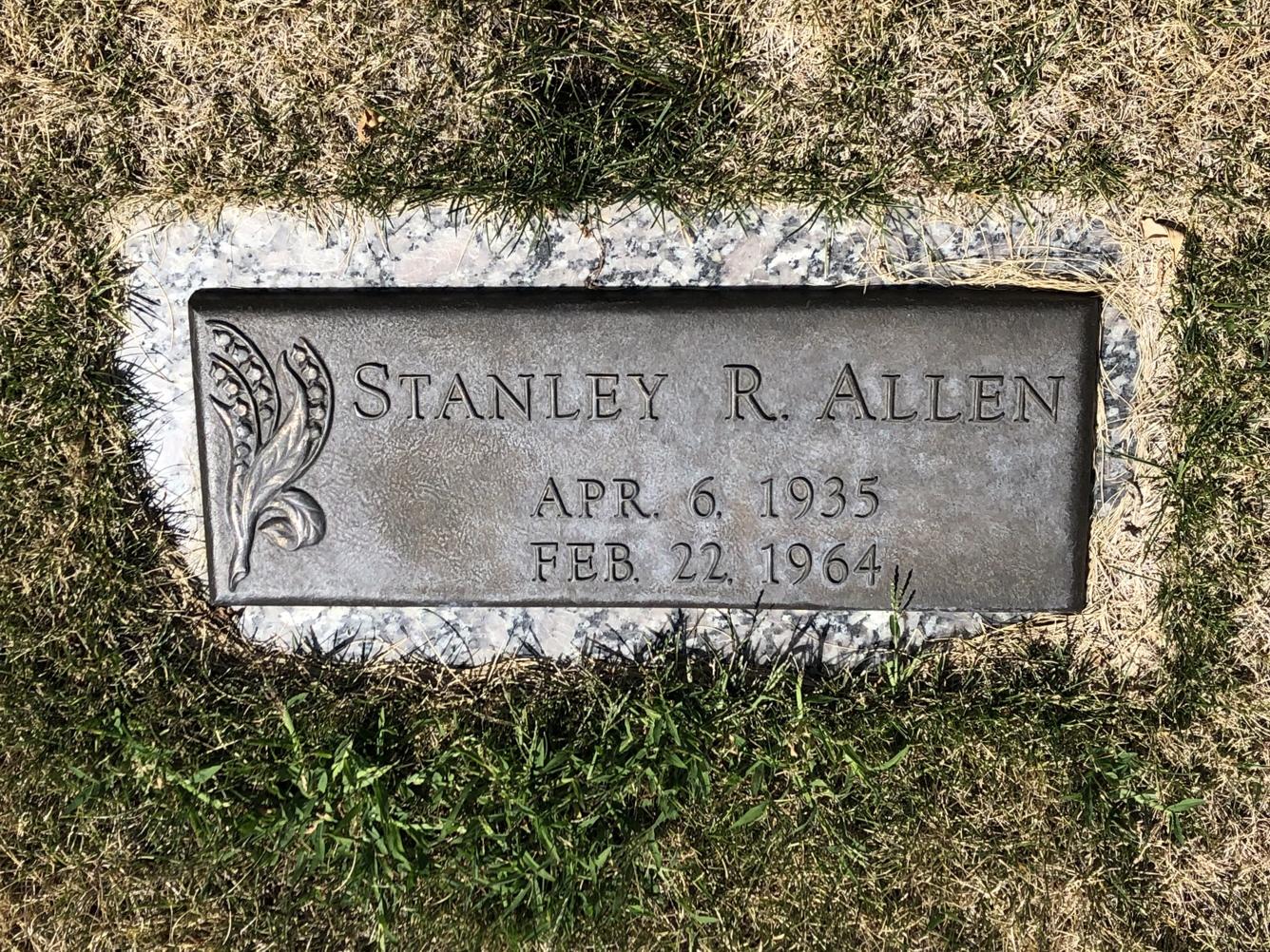 Grave marker for Stanley Delno Allen at