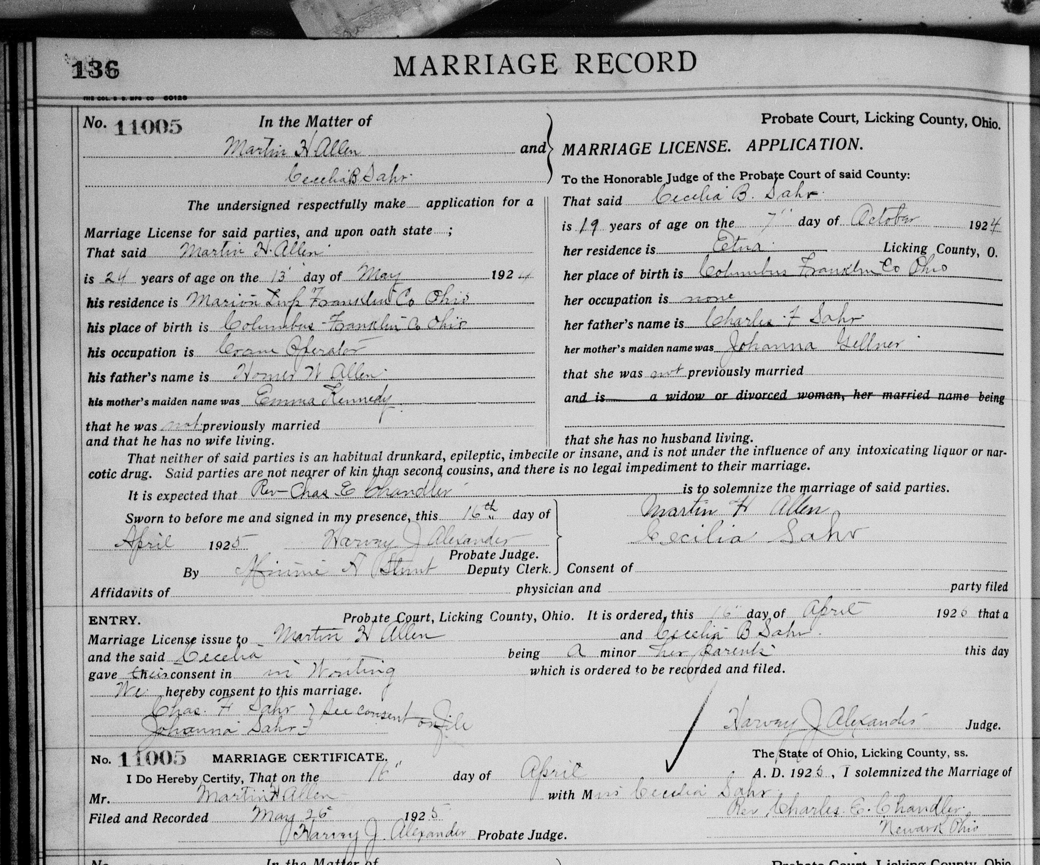 Marriage license for