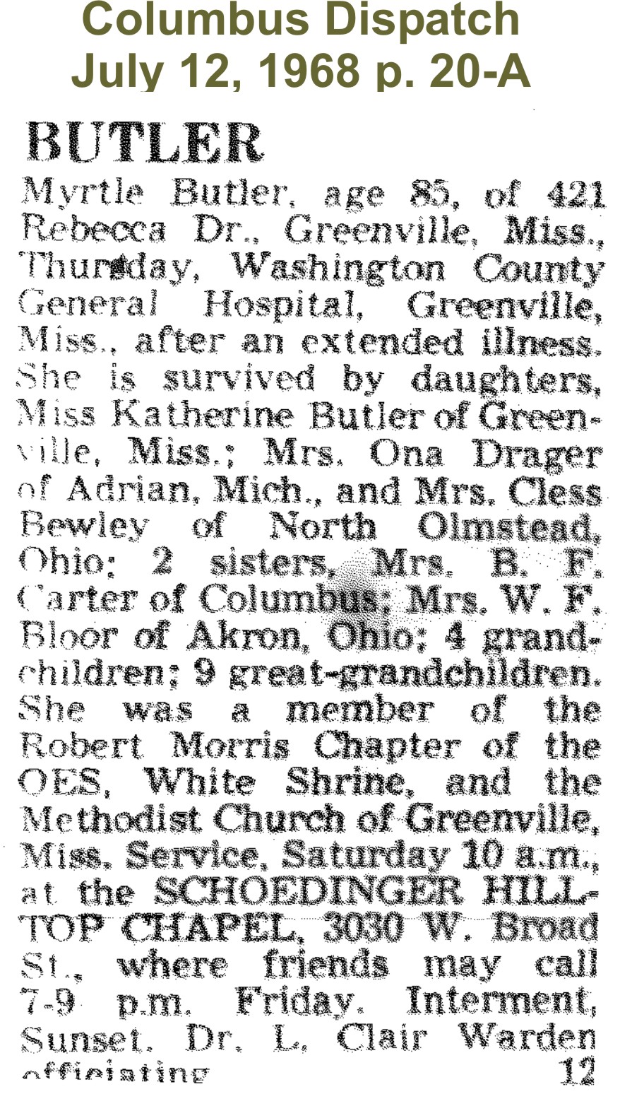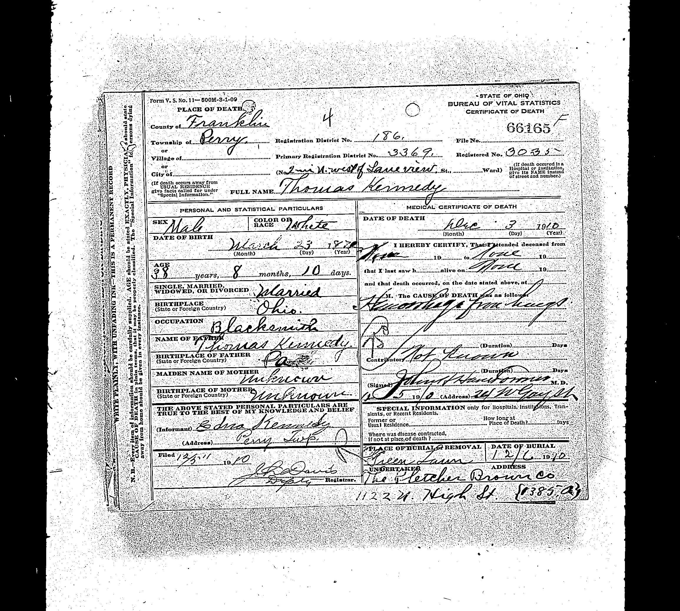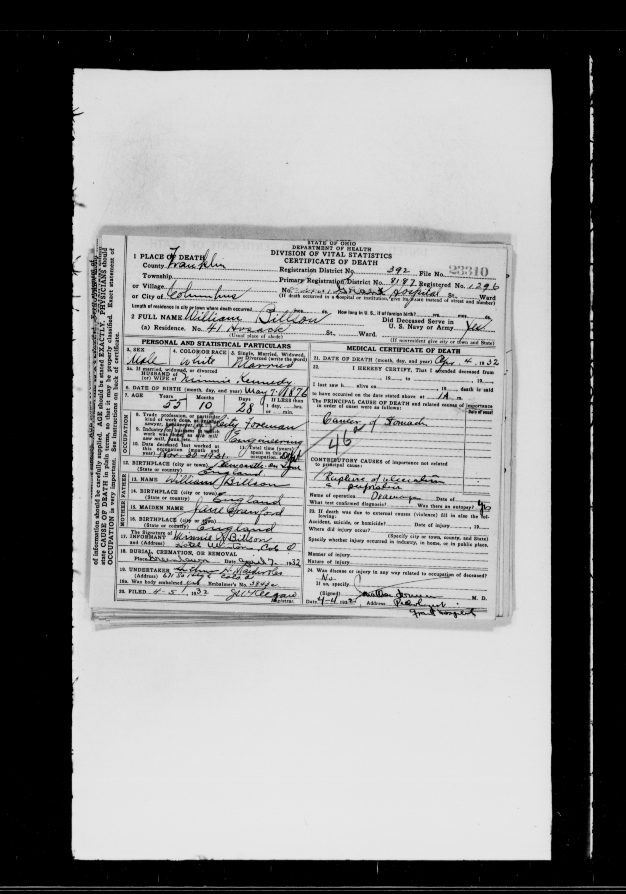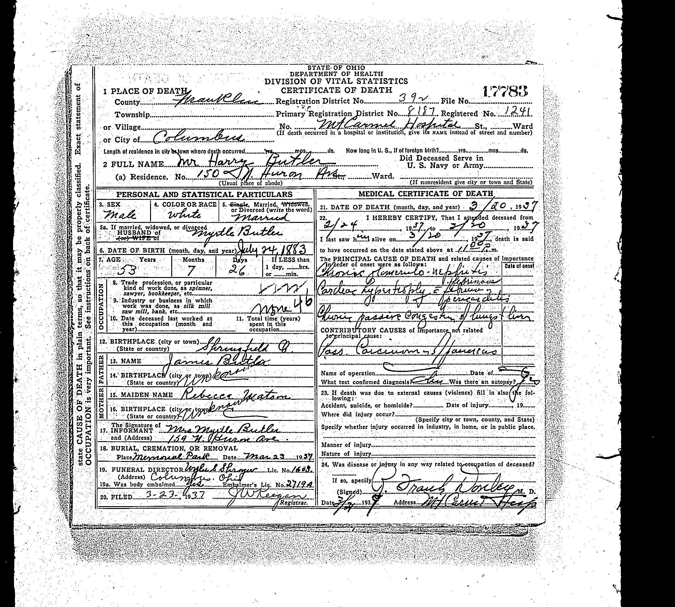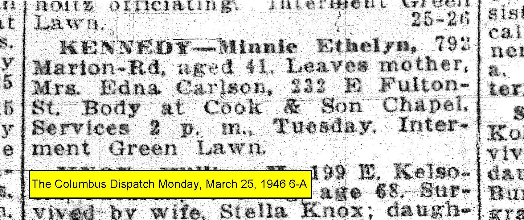 May 21, 1926, Columbus, Franklin Co., OH. Buried at Green Lawn