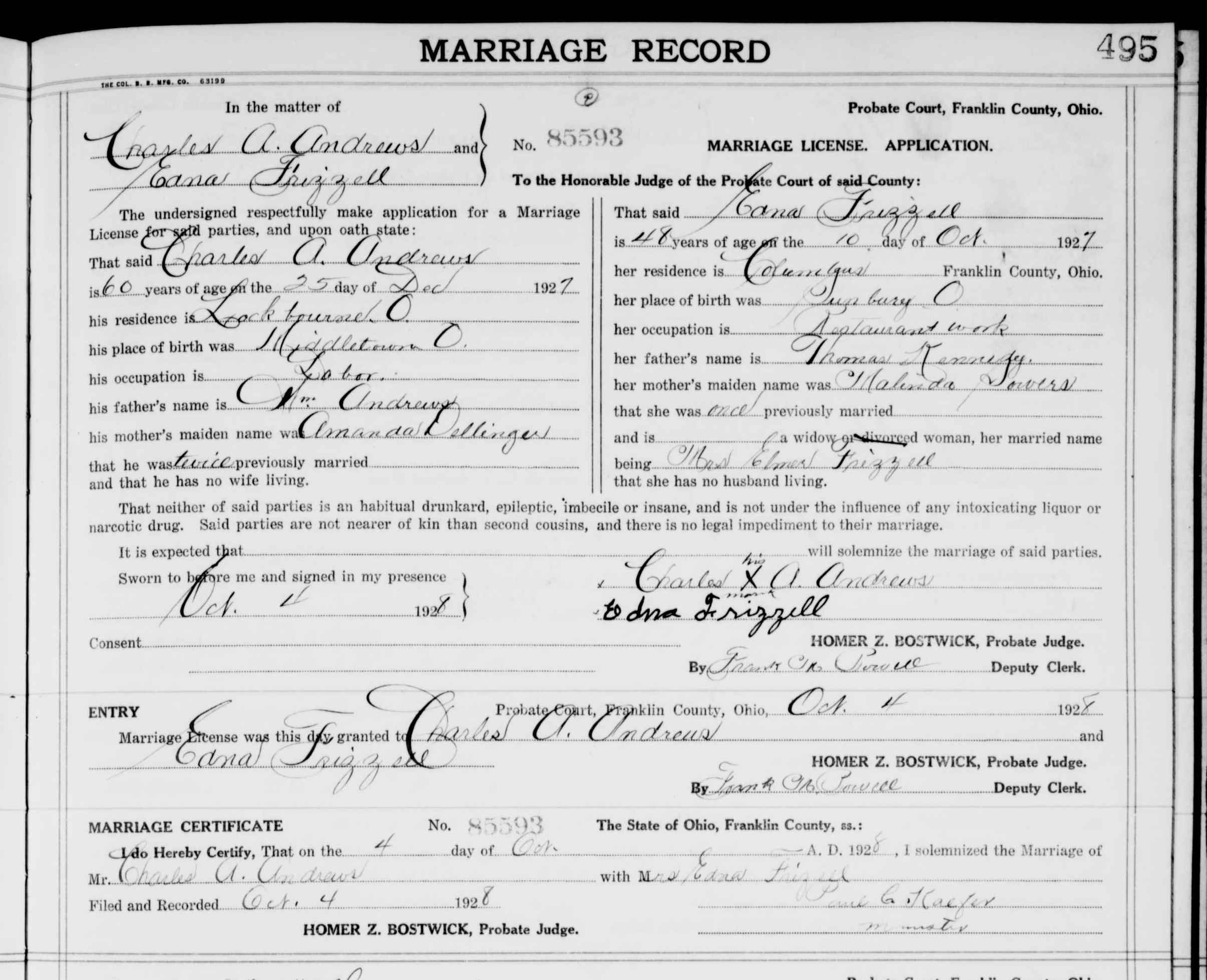 Marries William Billson, Aug 2, 1924, Franklin Co., OH |