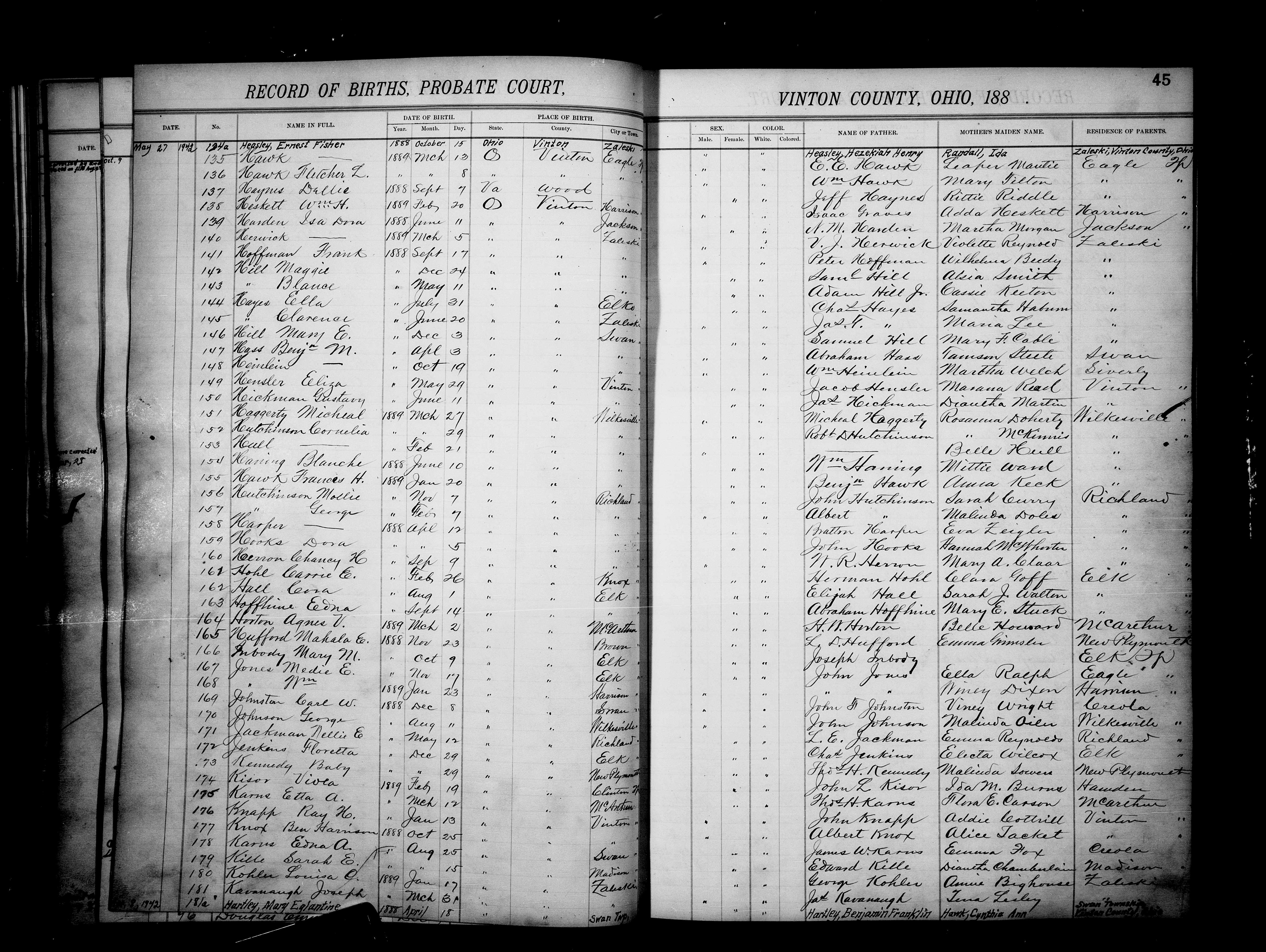 Dec 29, 1888, New Plymouth, Vinton Co., OH |