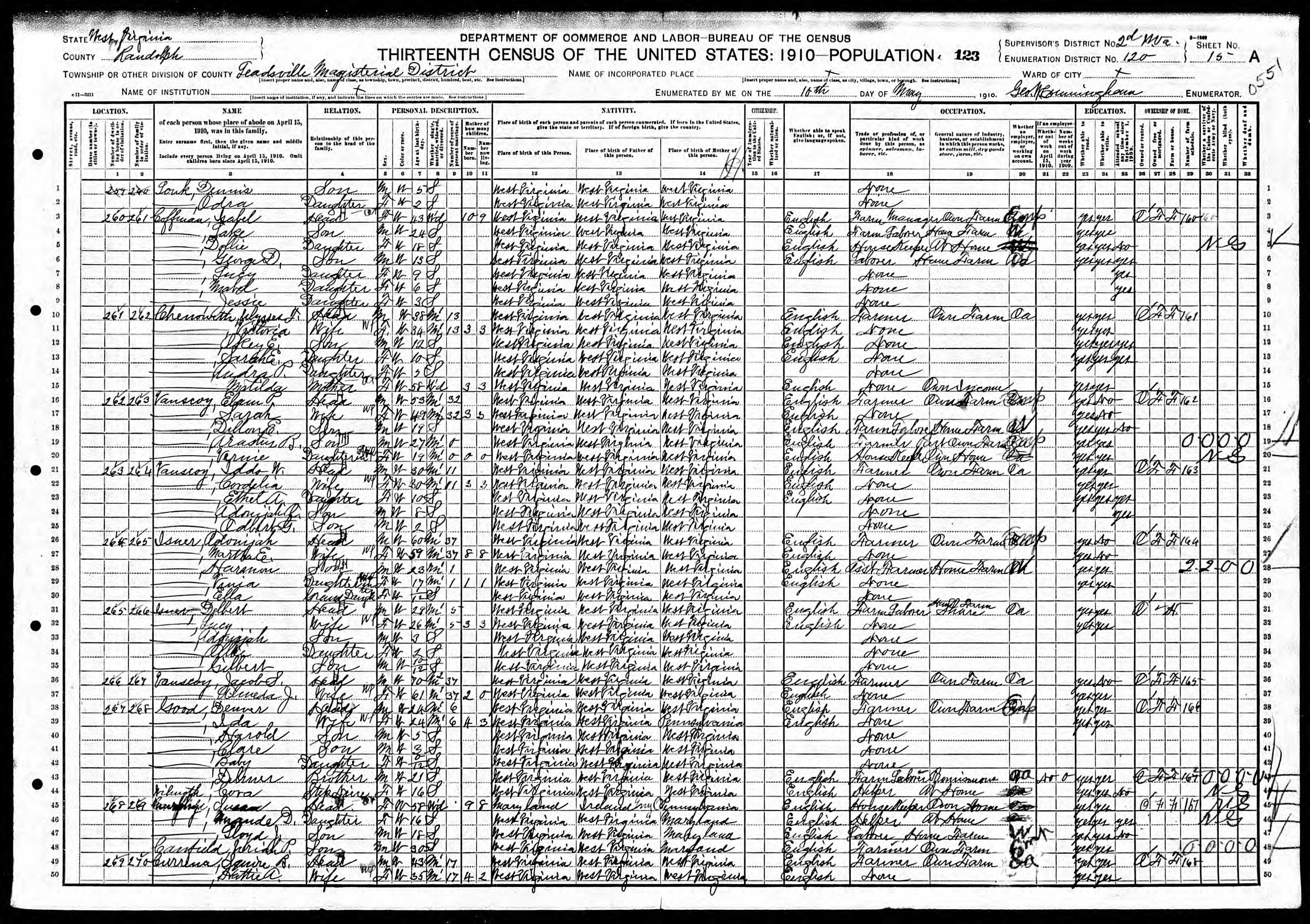 1910 U. S. Census, St. George, Tucker County, West Virginia
