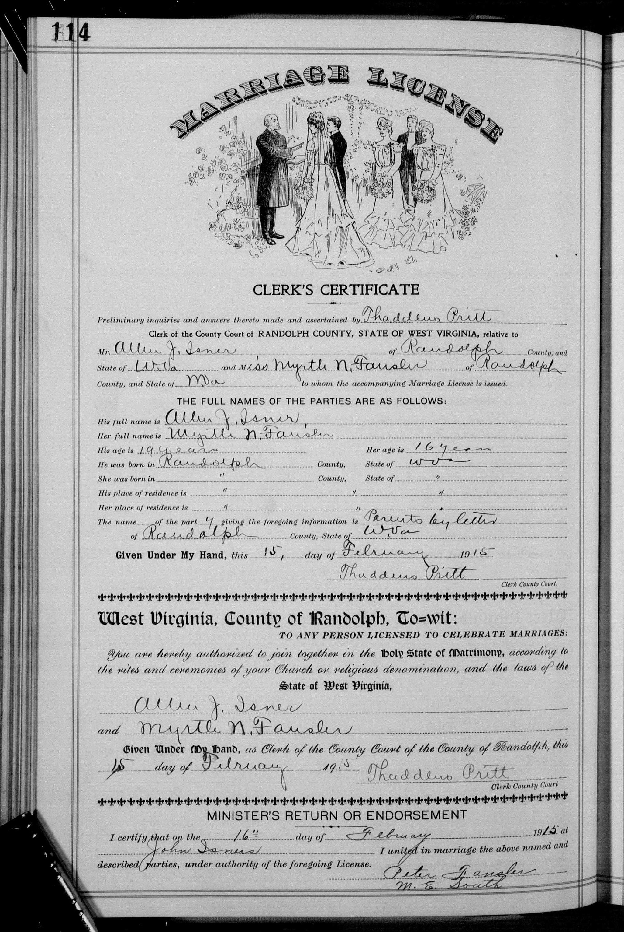 Randolph Co., WV, son of Salathiel Isner and Mary Powers |