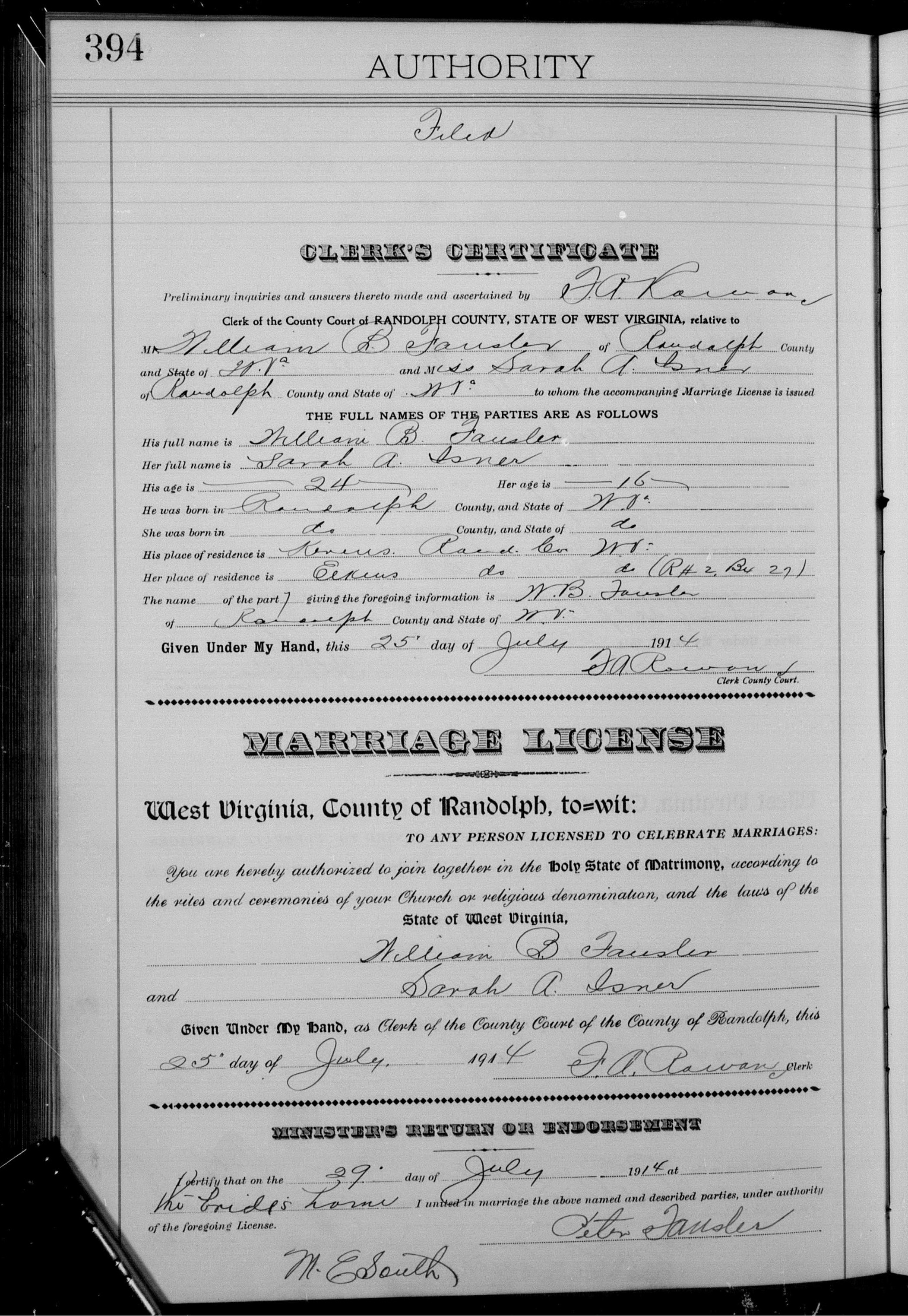 Nov 25, 1882, Randolph Co., WV, daughter of Lucinda Jane