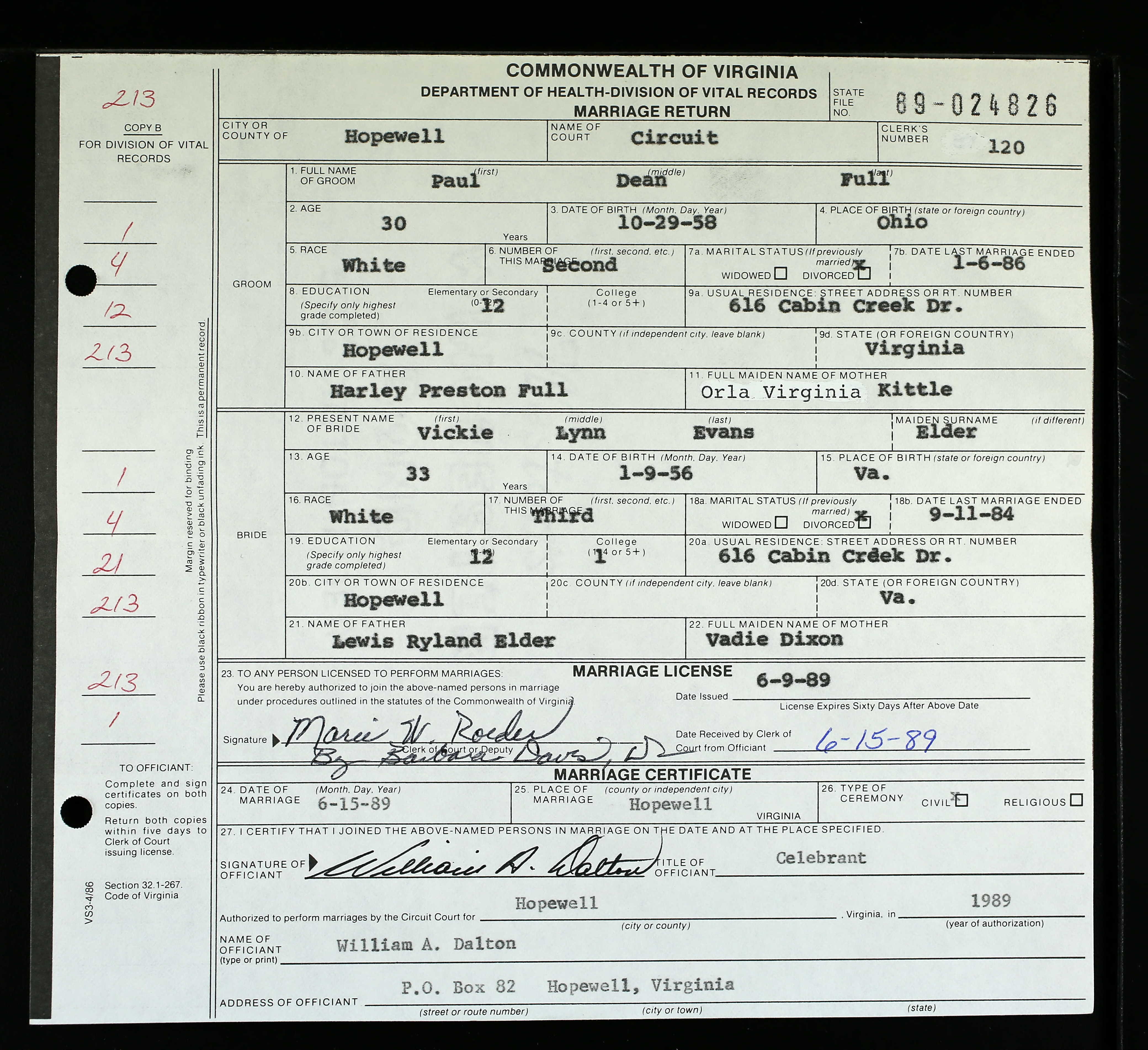 Marriage license for