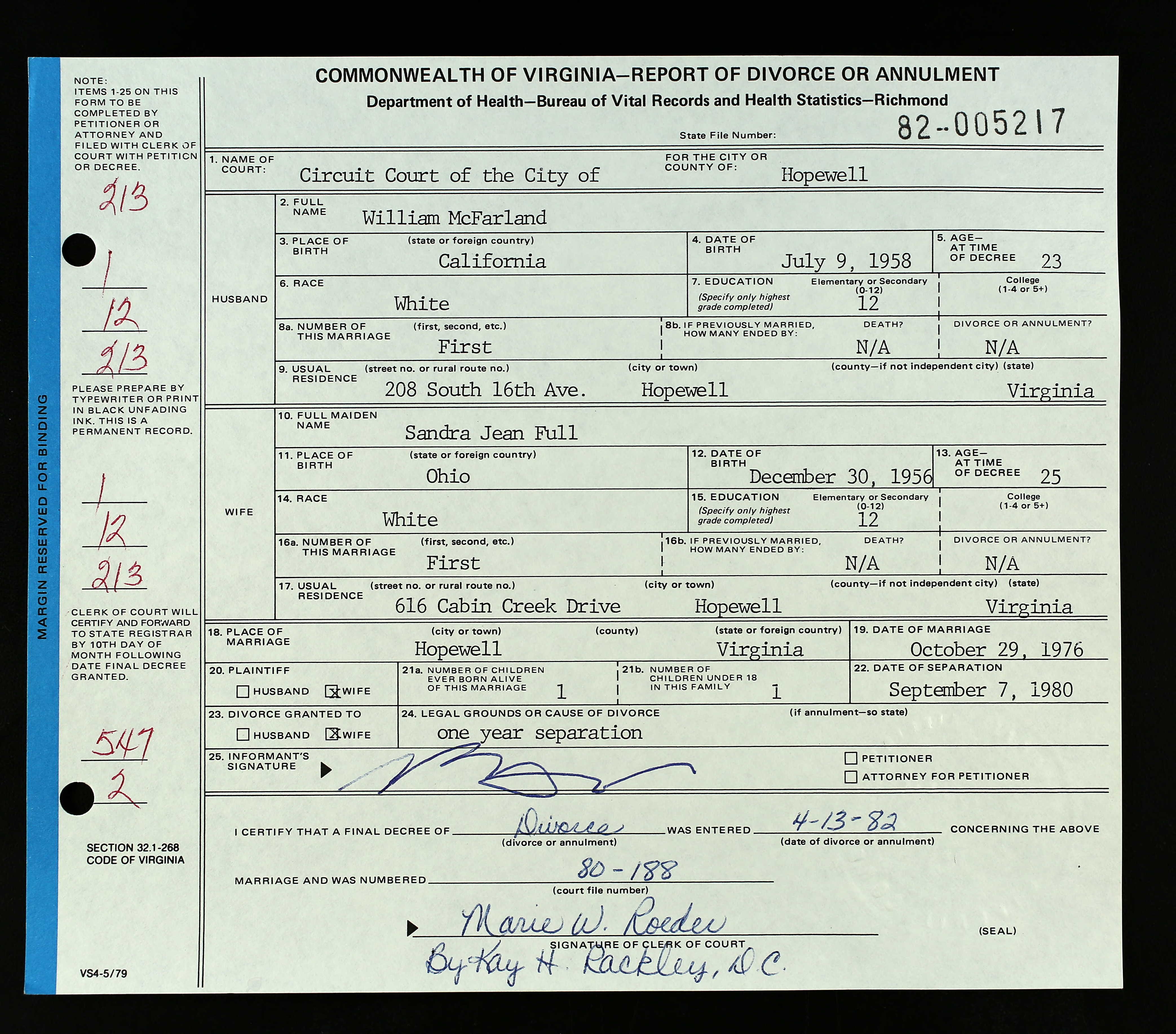 - b. May 23, 1960, Canton, Stark Co., OH