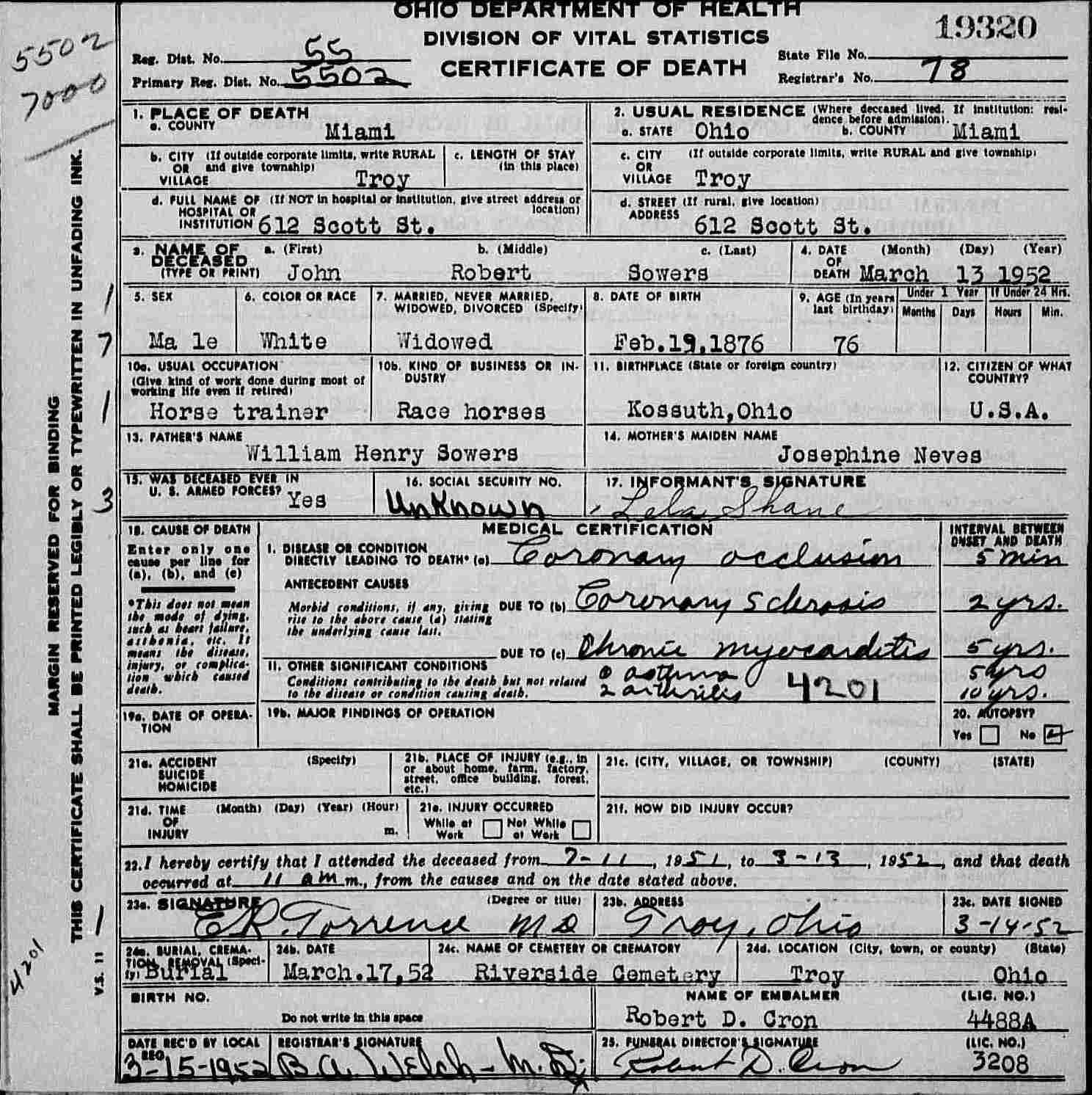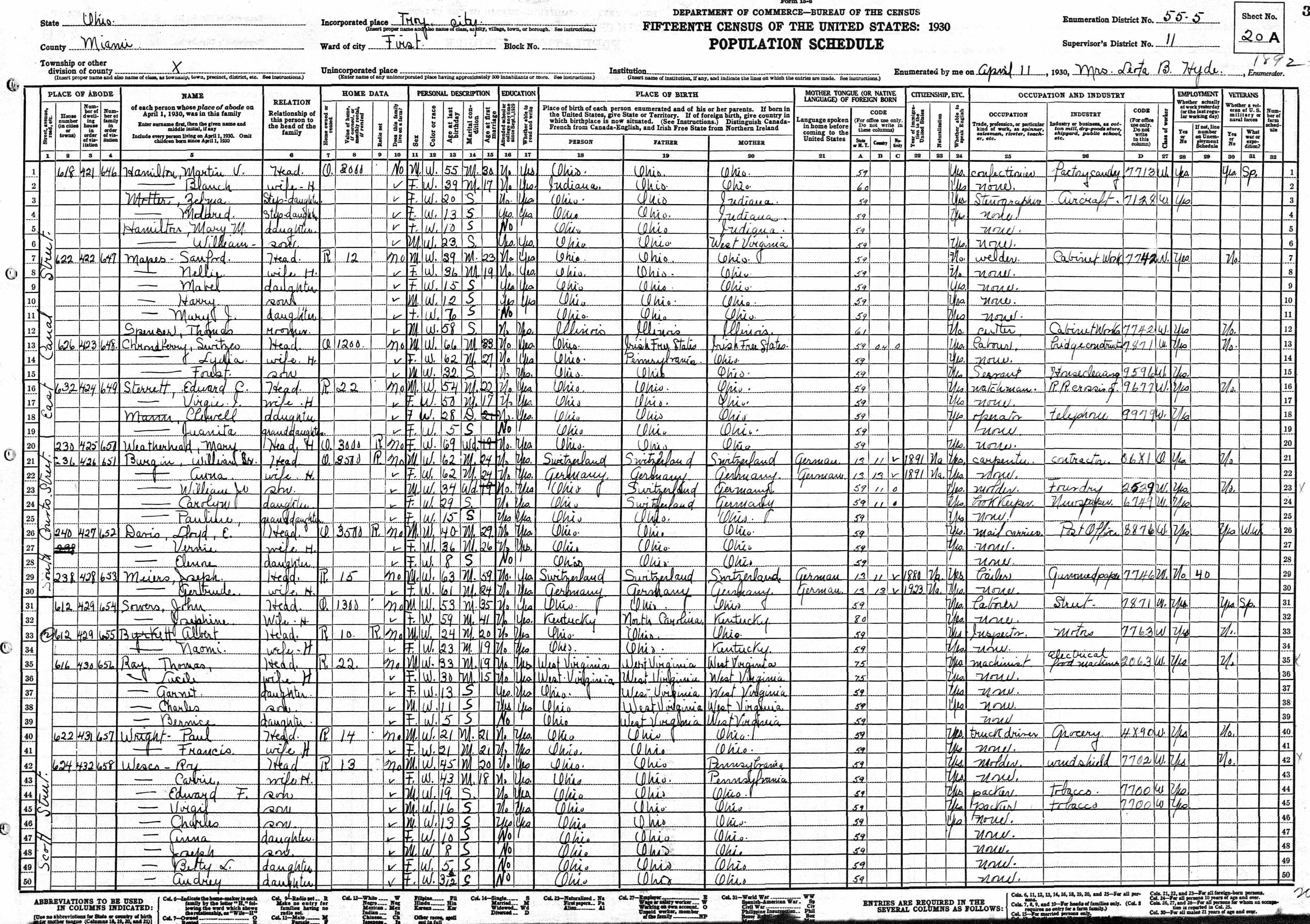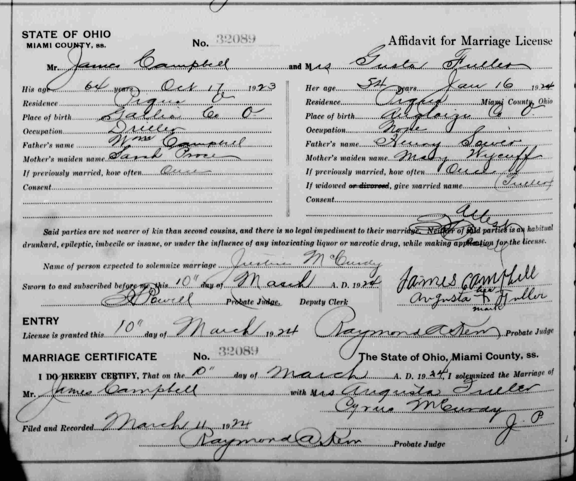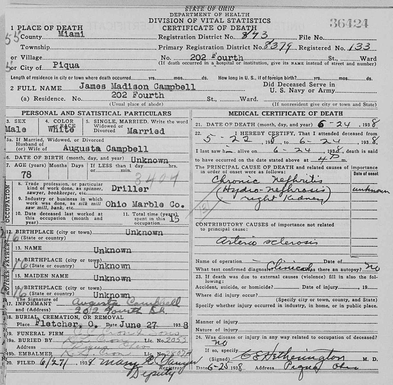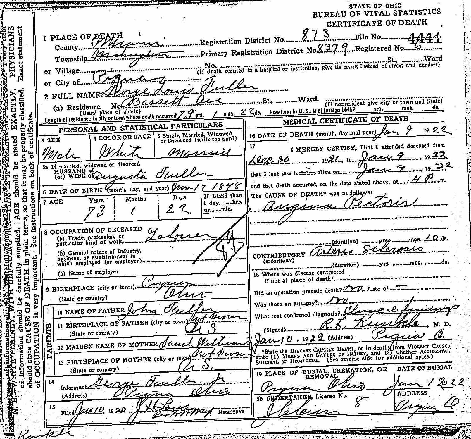 - b. Feb 19, 1876, Salem, Auglaize Co., OH ; d. Mar 13, 1952, Troy, Miami