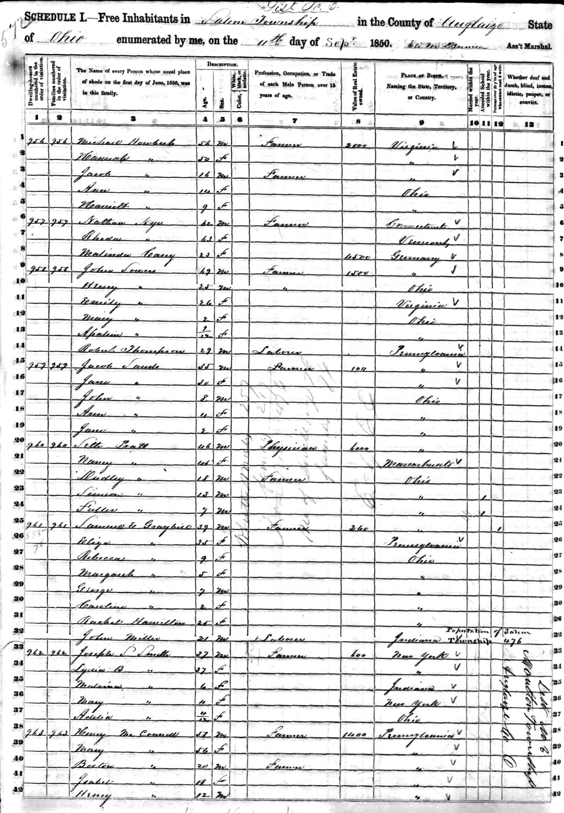 Census. Henry Sowers is living next door to the Levi Wykoff family where his