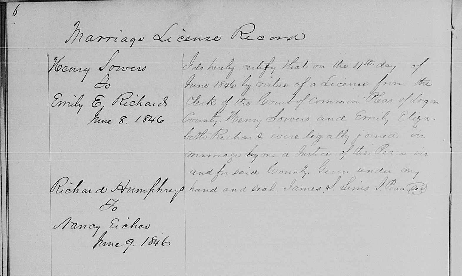 Emily Elizabeth Richards, Jun 11, 1846, Logan Co., OH |