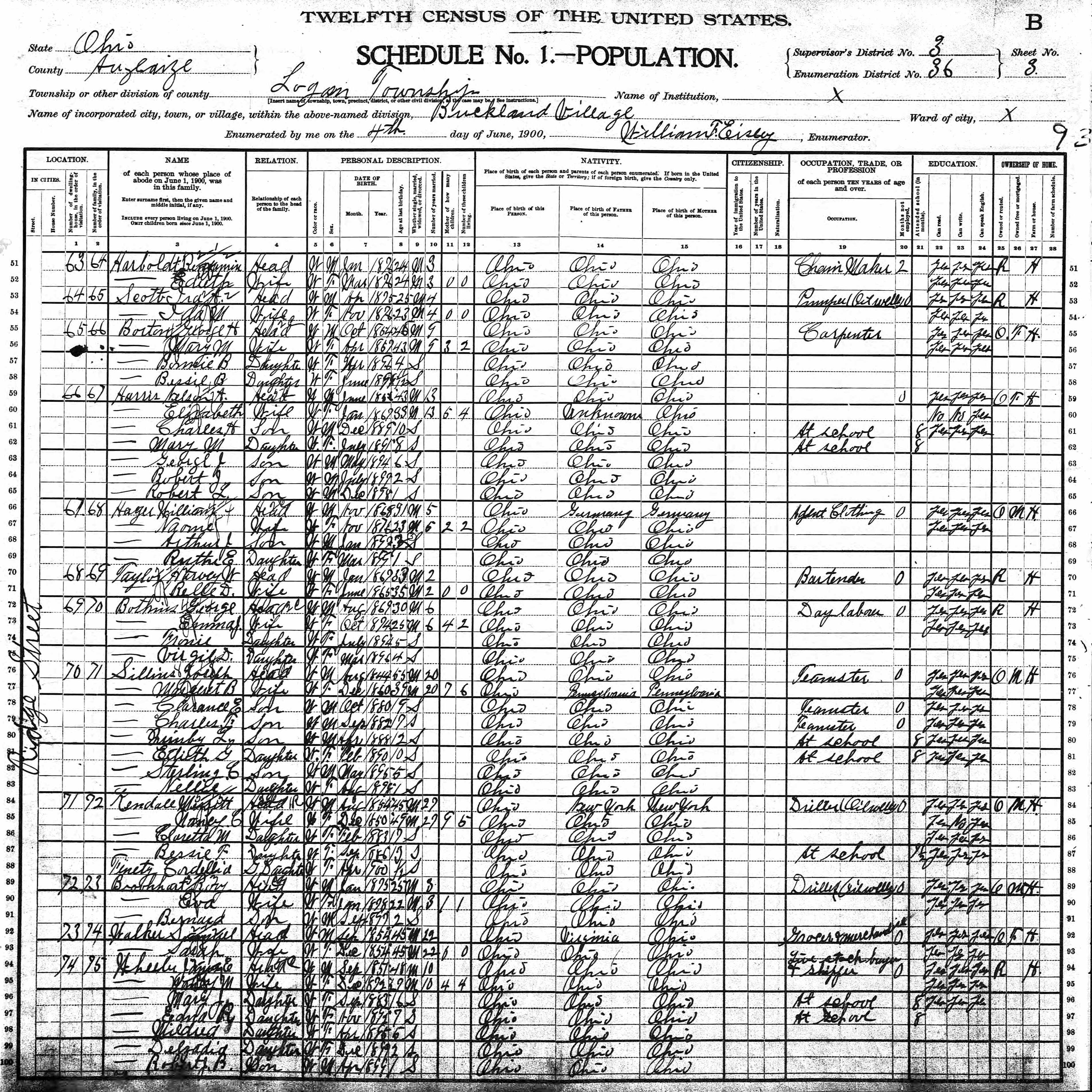 1900 U. S. Census, Logan Township,