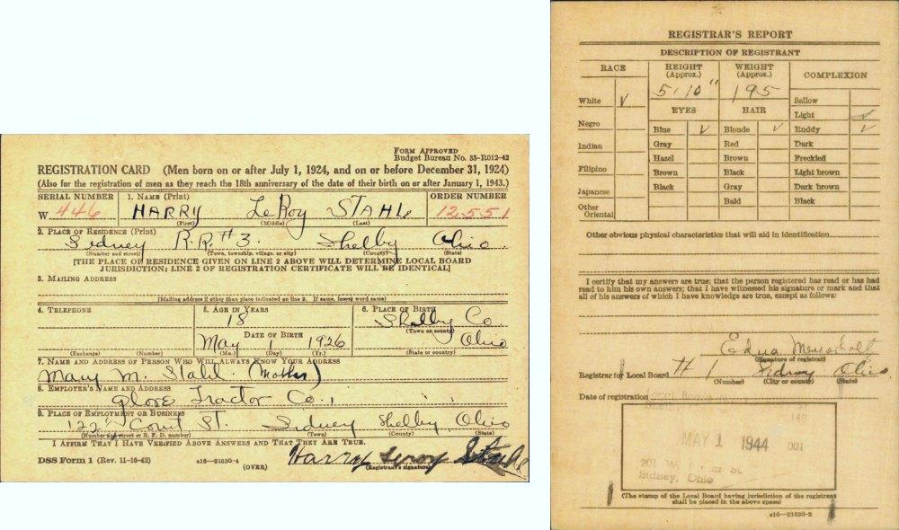 Robert LeRoy Harris - b. Dec 24, 1898, Buckland, Auglaize Co.,