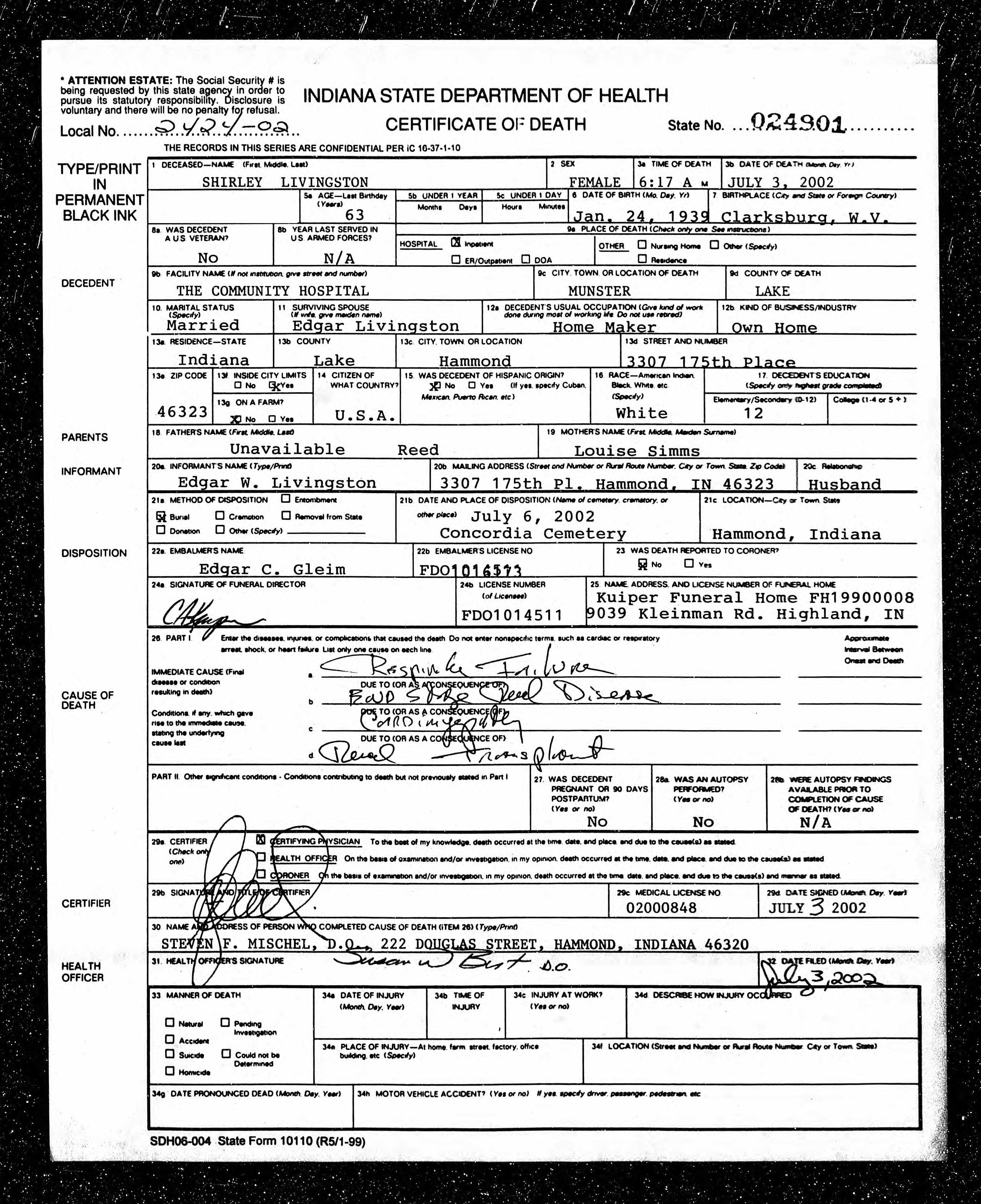 Co., WV; d. Oct 9, 2008, WV. Buried at Floral Hills Memorial