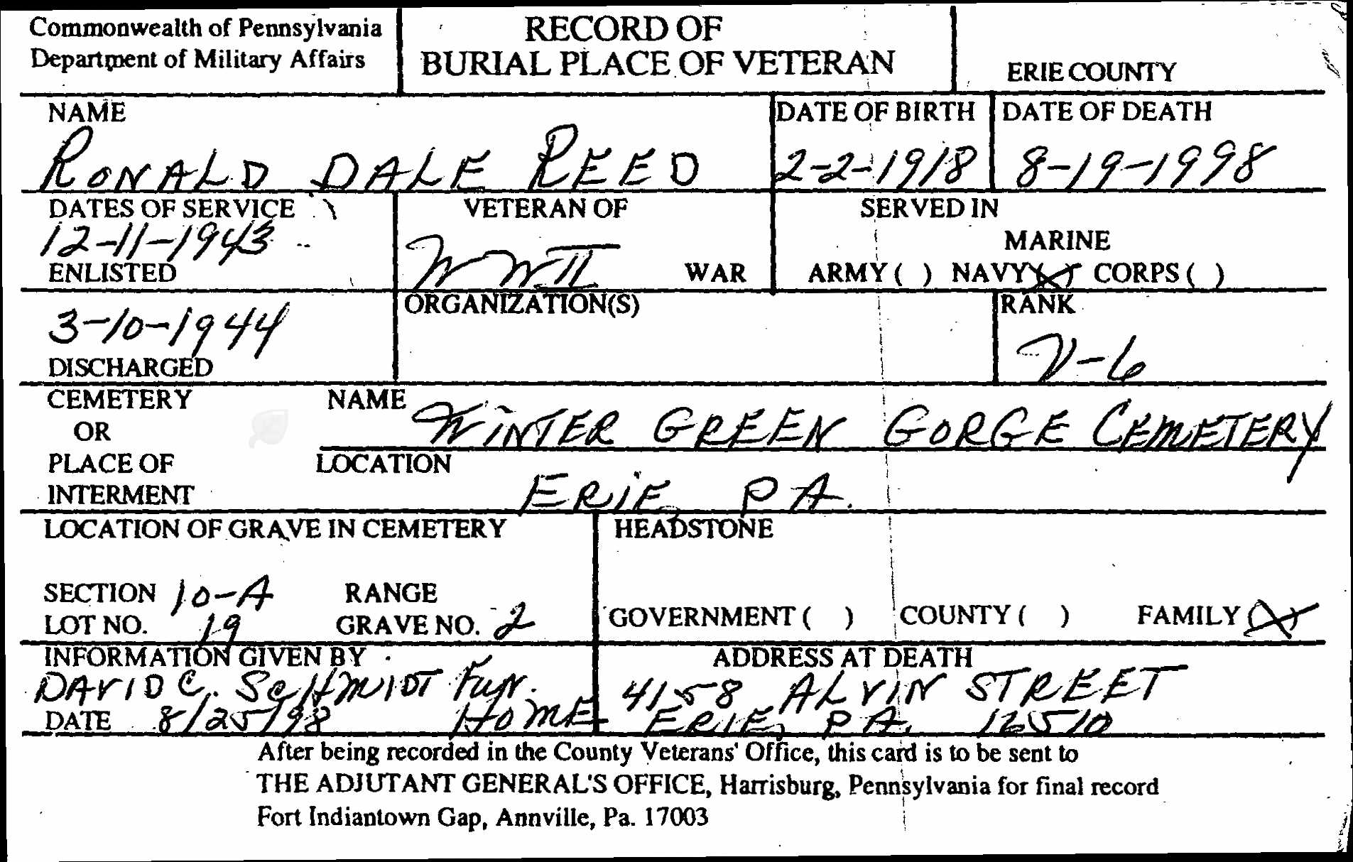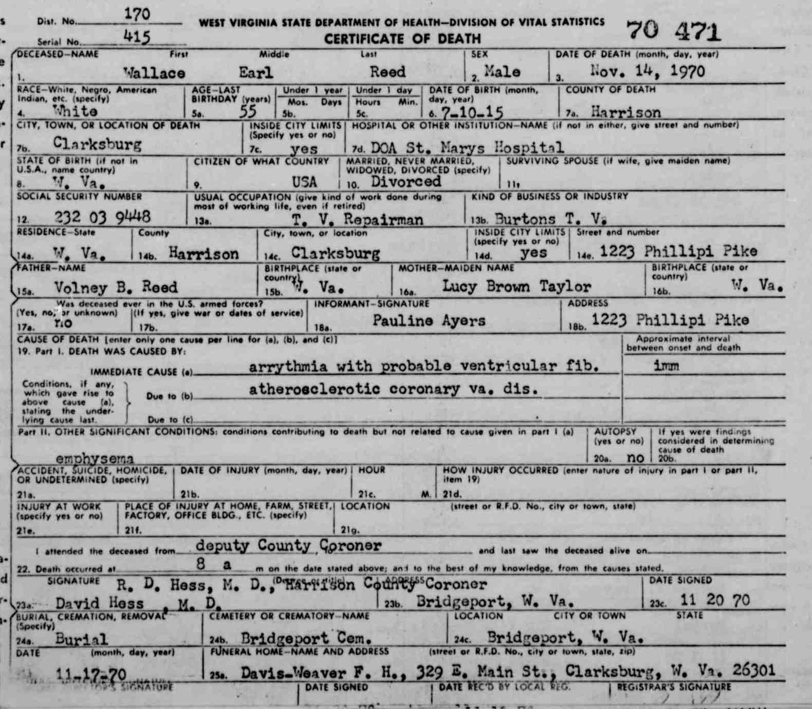 - (b. Apr 17, 1914, Harrison Co., WV, son of Granville