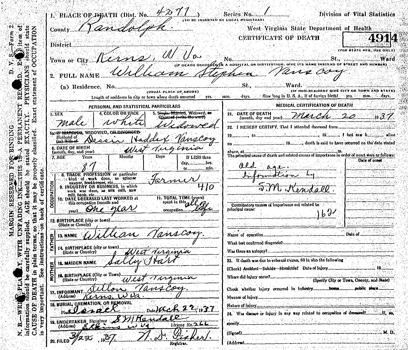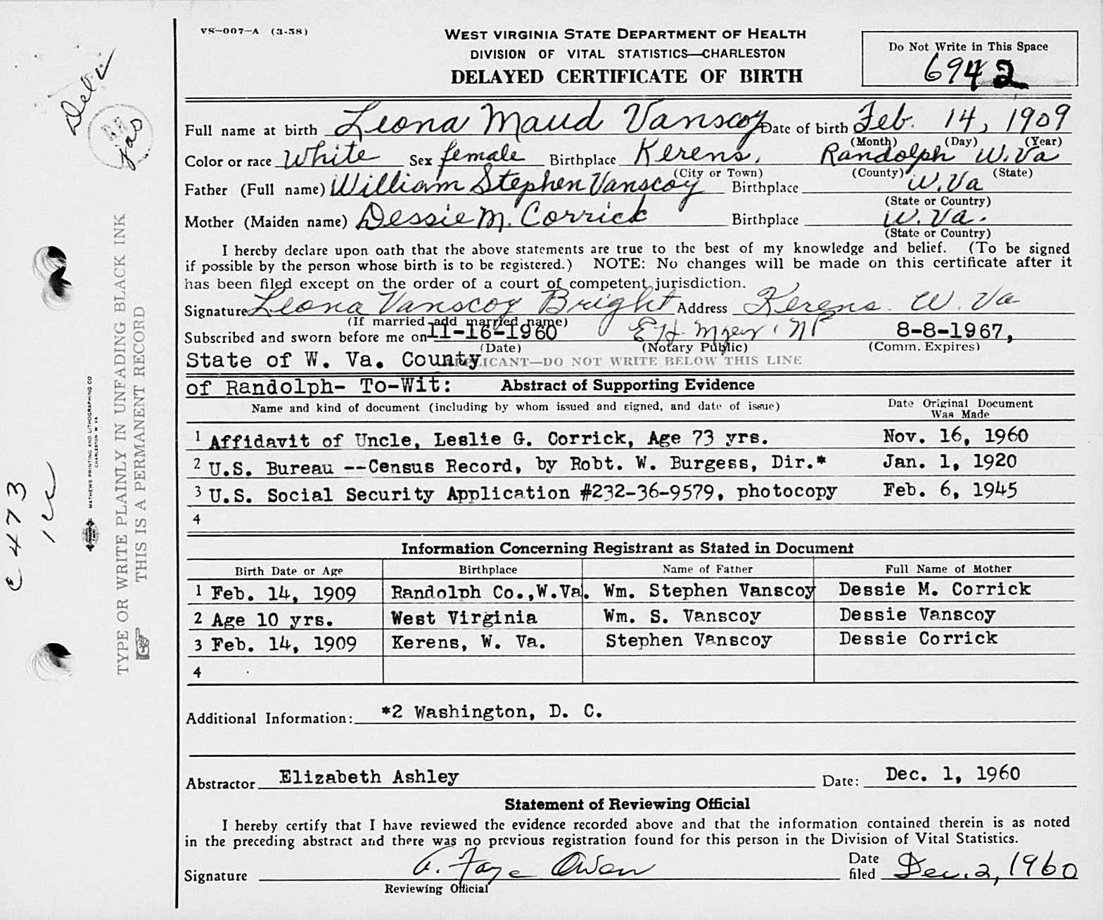 May 7, 1936, Kerens, Randolph Co., WV. Married first to Al Haddix) - April 22, 1909, Randolph Co., WV |