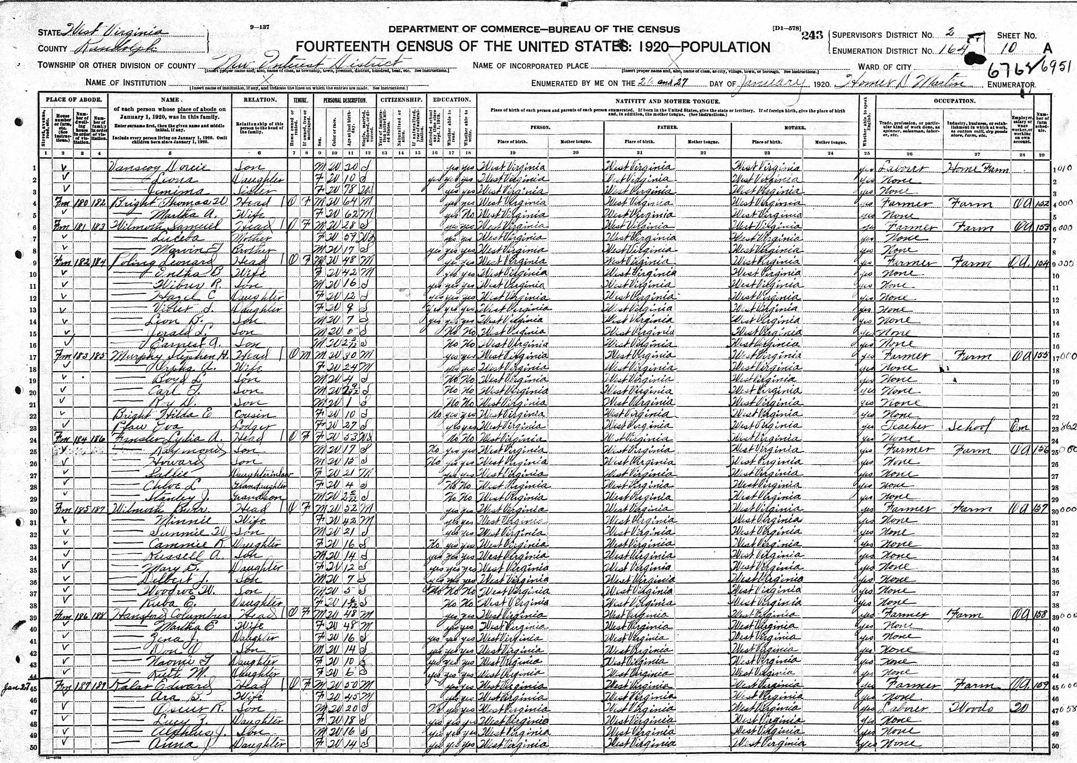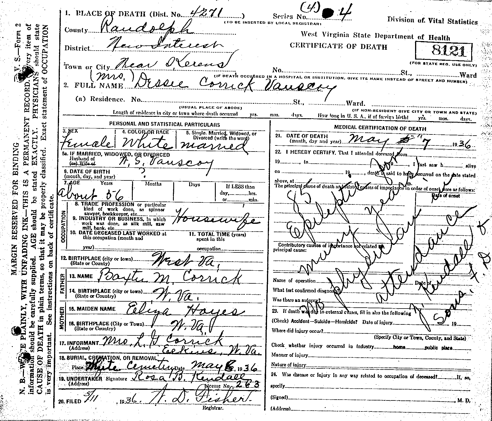 - (b. Mar 1882, WV, daughter of Baxter Marteney Corrick and Eliza Hayes; d.