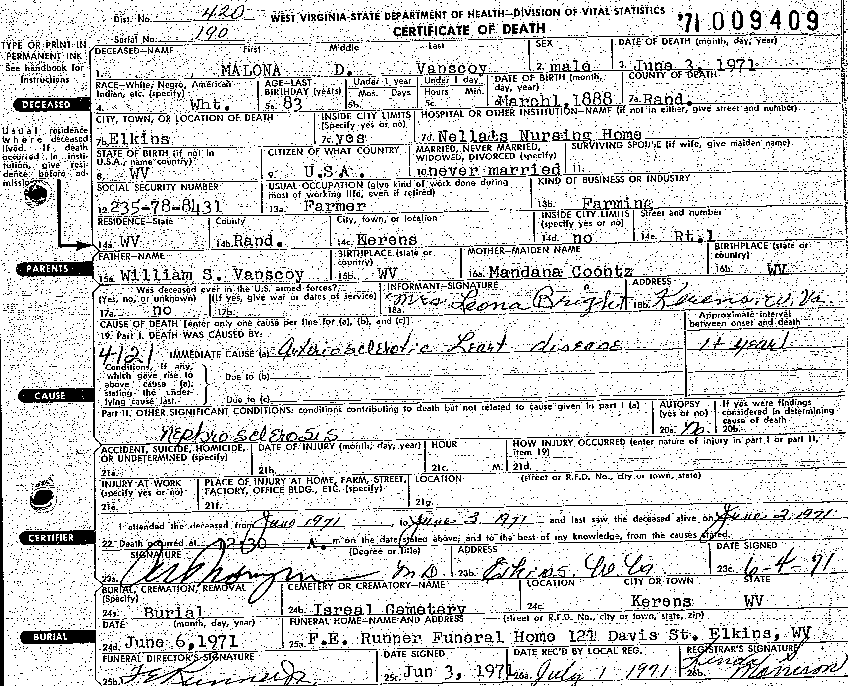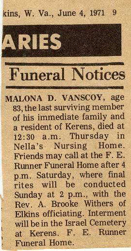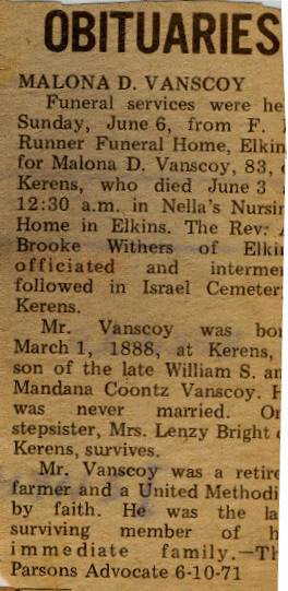 Sep 14, 1865, Clay, Randolph Co., WV |